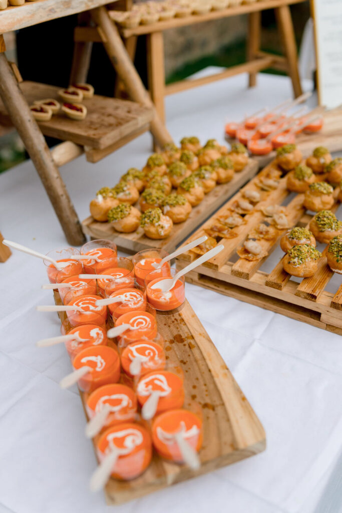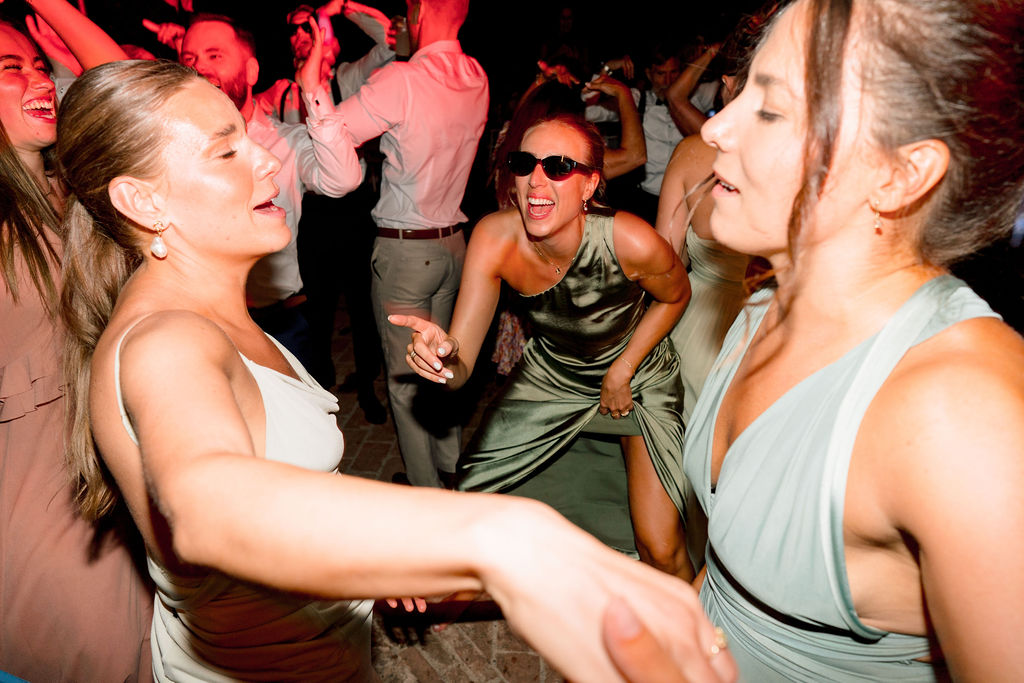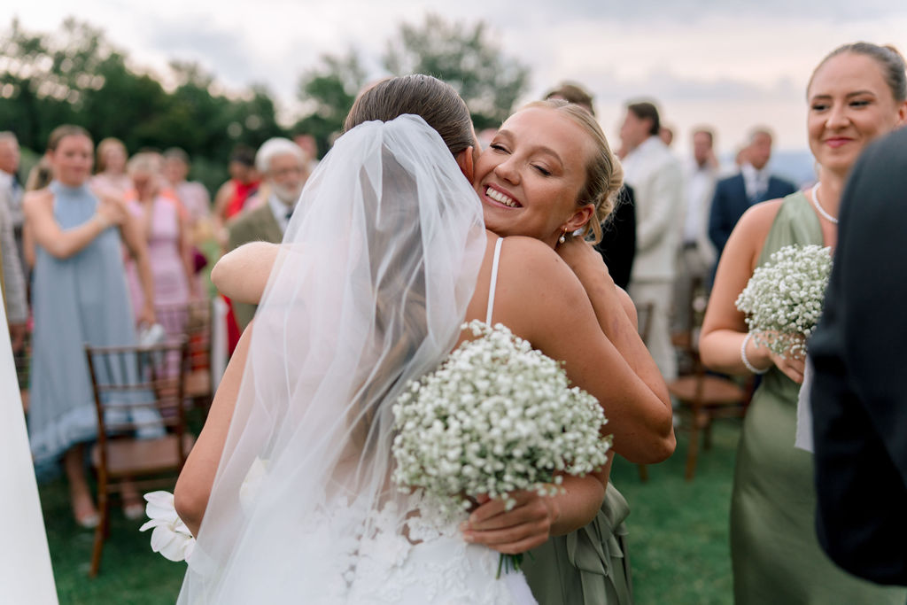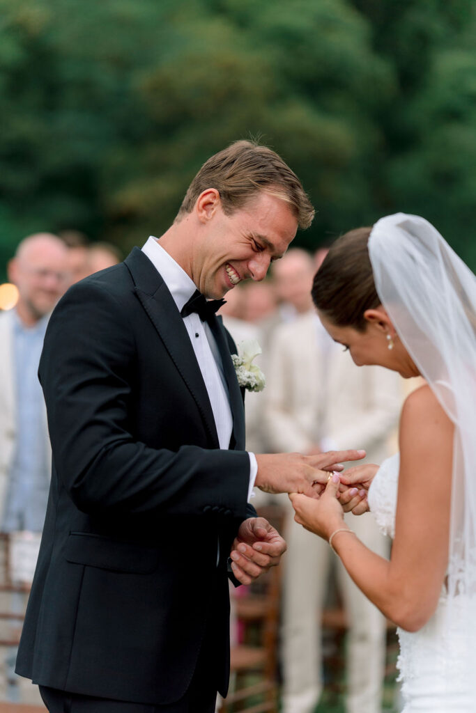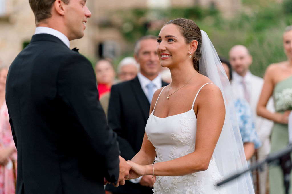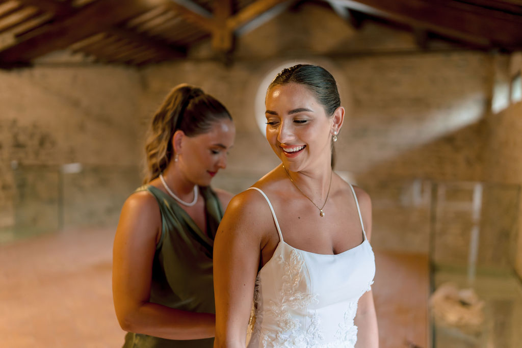 The wedding day itself came with a little drama. An approaching storm that threatened to disrupt plans for a fully outdoor celebration at SPAO Borgo San Pietro. Every part of the day had been designed to take place outside, from the ceremony through to the alfresco dining and evening party, so there was a collective sense of anticipation watching the skies. In a last-minute decision, the ceremony was pushed back by an hour to avoid the drizzle. And somehow, it worked. While the skies remained moody and distant thunder rumbled in the background, the rain mostly held off, allowing the entire wedding to unfold exactly as planned, entirely outdoors at SPAO Borgo San Pietro.
