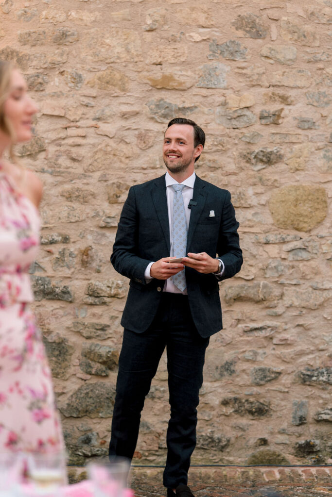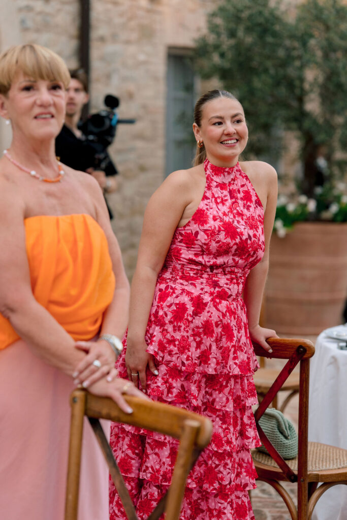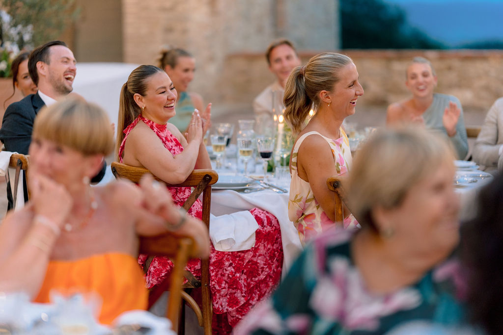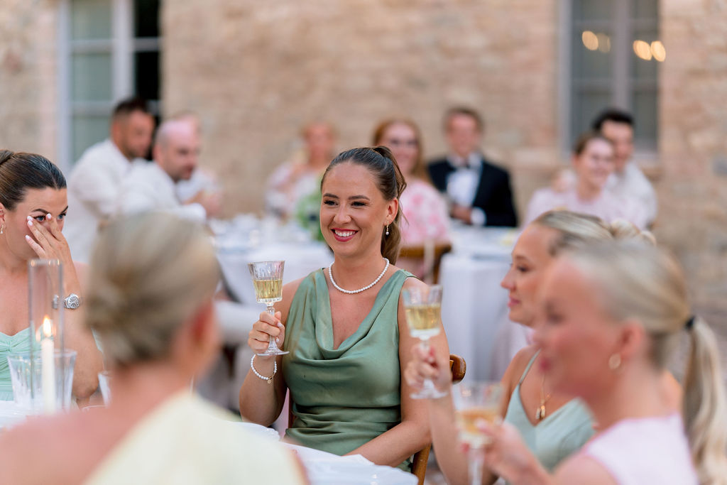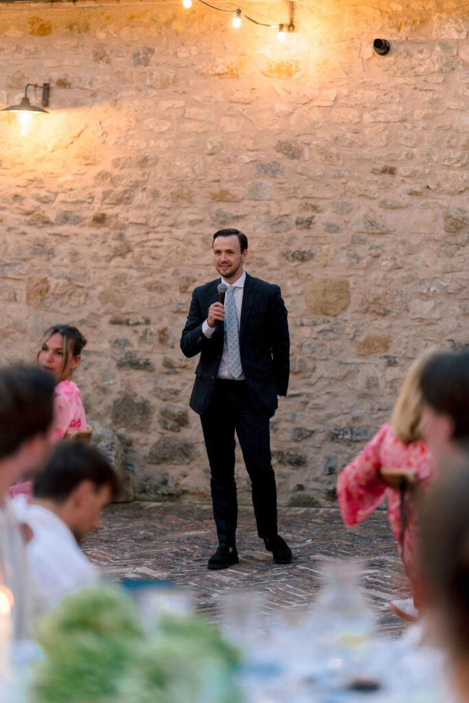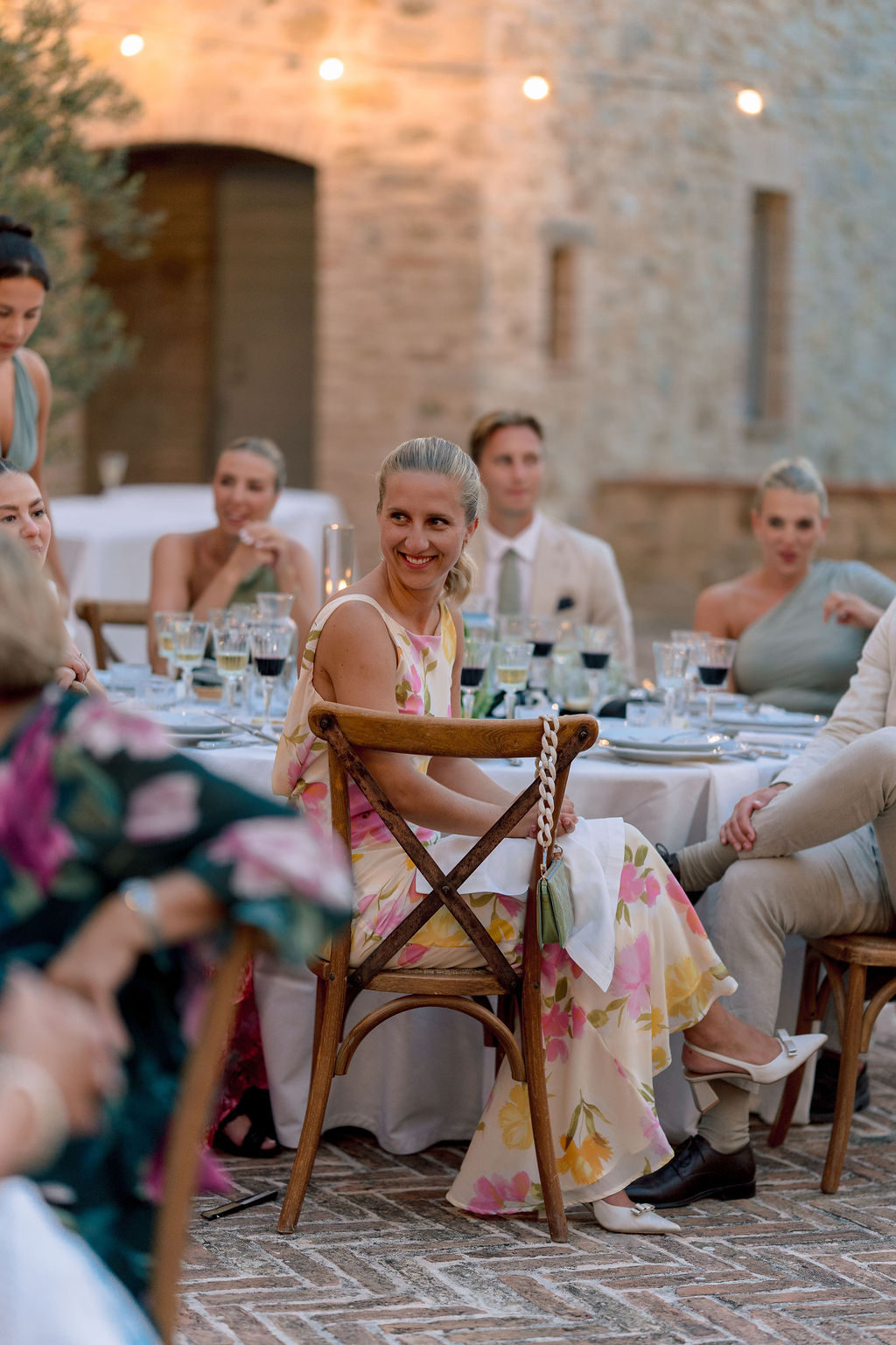 During the ceremony of this Norwegian wedding in Umbria, I couldn’t anticipate key moments like the first kiss through words alone. I had to stay completely visually alert, reading body language and positioning myself instinctively. The same applied during speeches. Instead of reacting to names or punchlines, I watched the room closely, scanning for emotional reactions and meaningful connections.