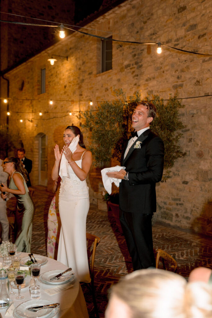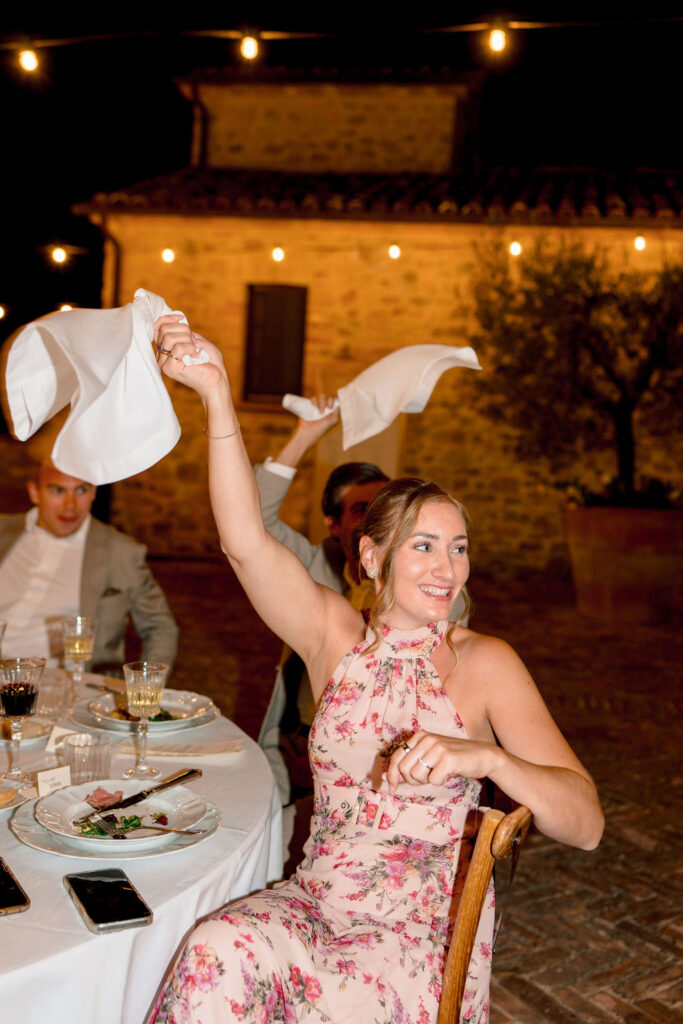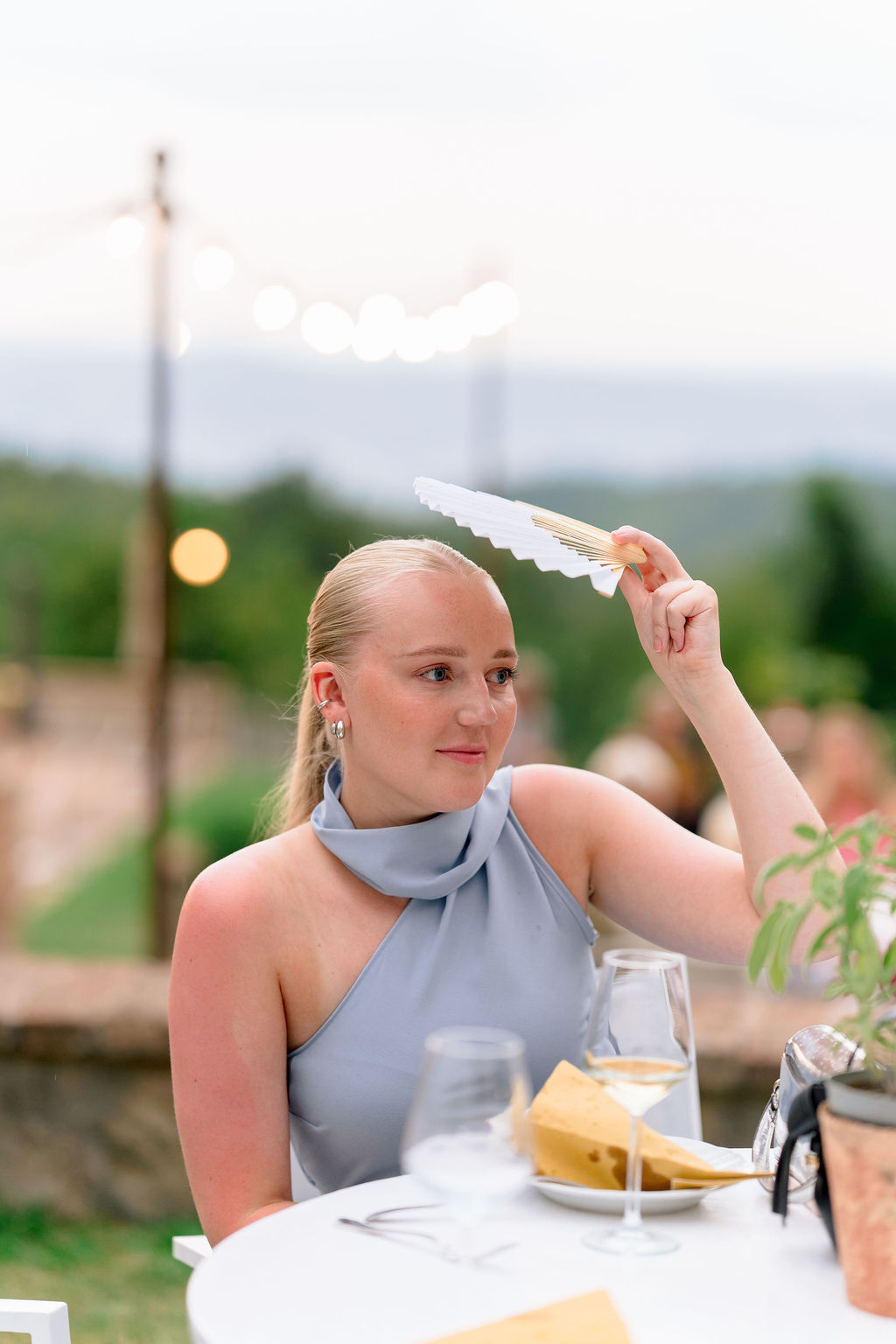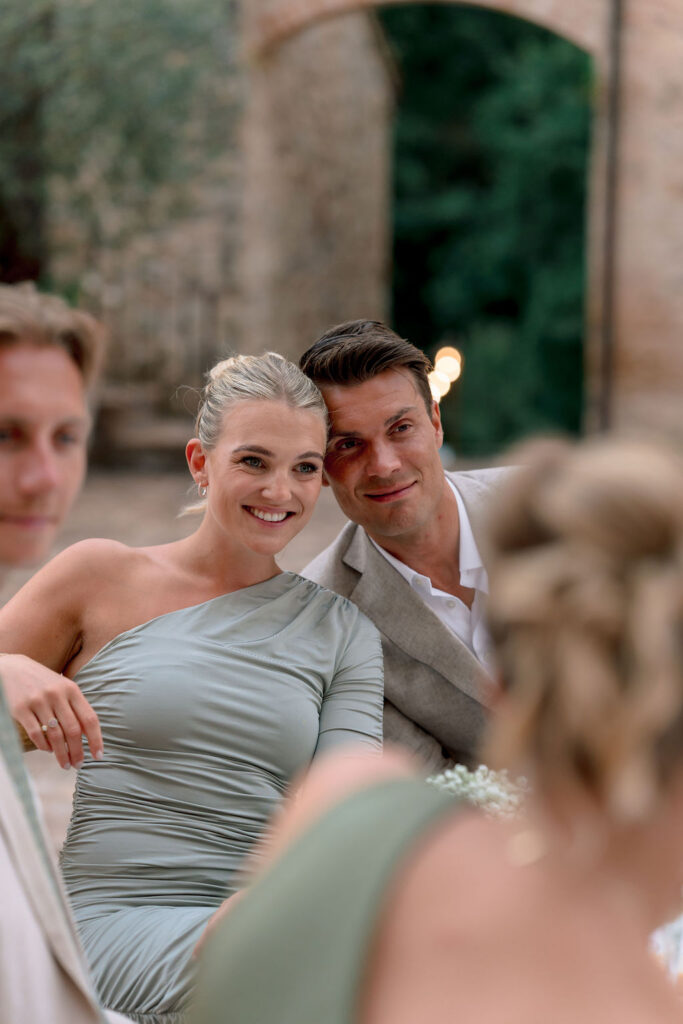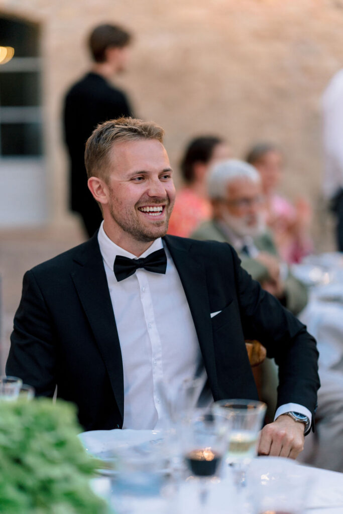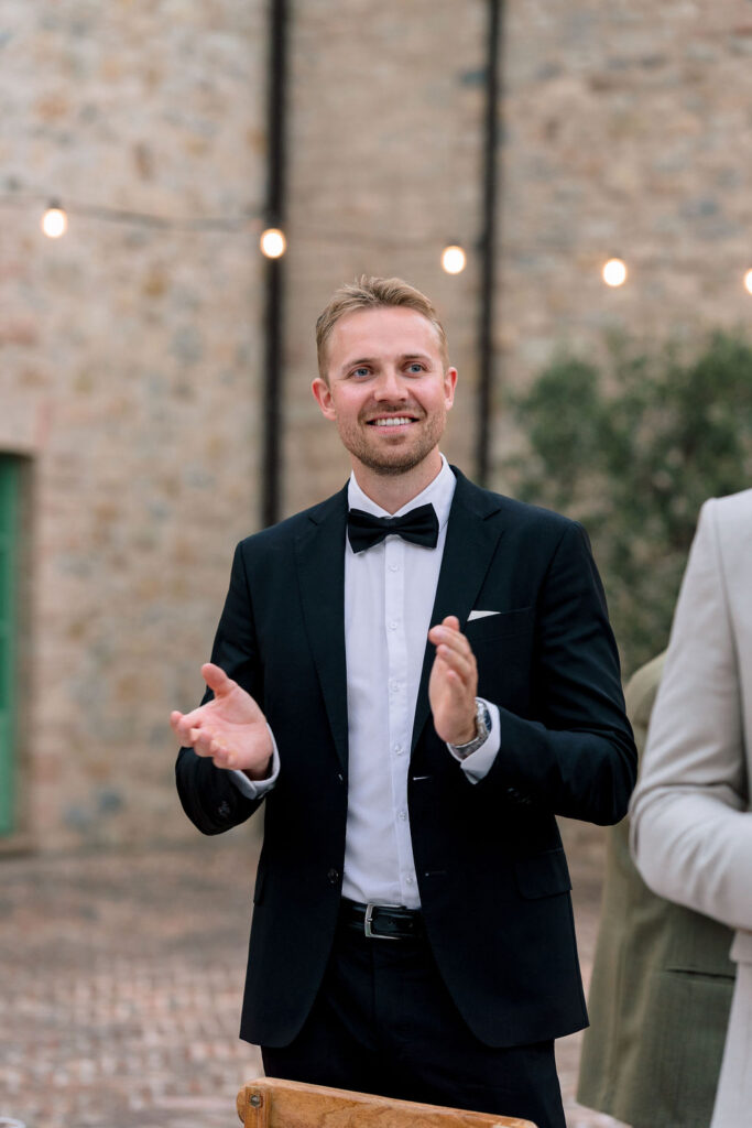 During the ceremony of this Norwegian wedding in Umbria, I couldn’t anticipate key moments like the first kiss through words alone. I had to stay completely visually alert, reading body language and positioning myself instinctively. The same applied during speeches. Instead of reacting to names or punchlines, I watched the room closely, scanning for emotional reactions and meaningful connections.