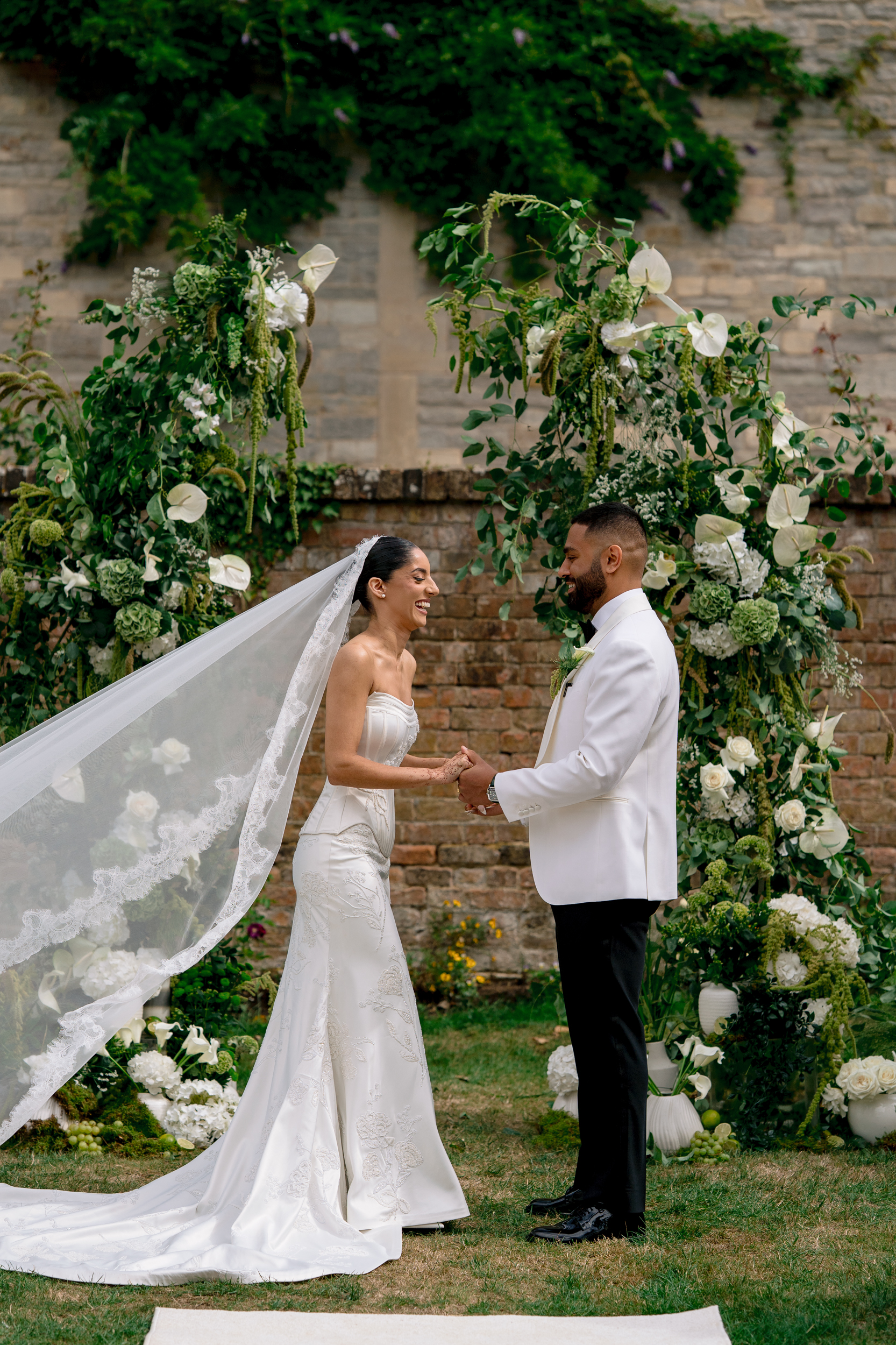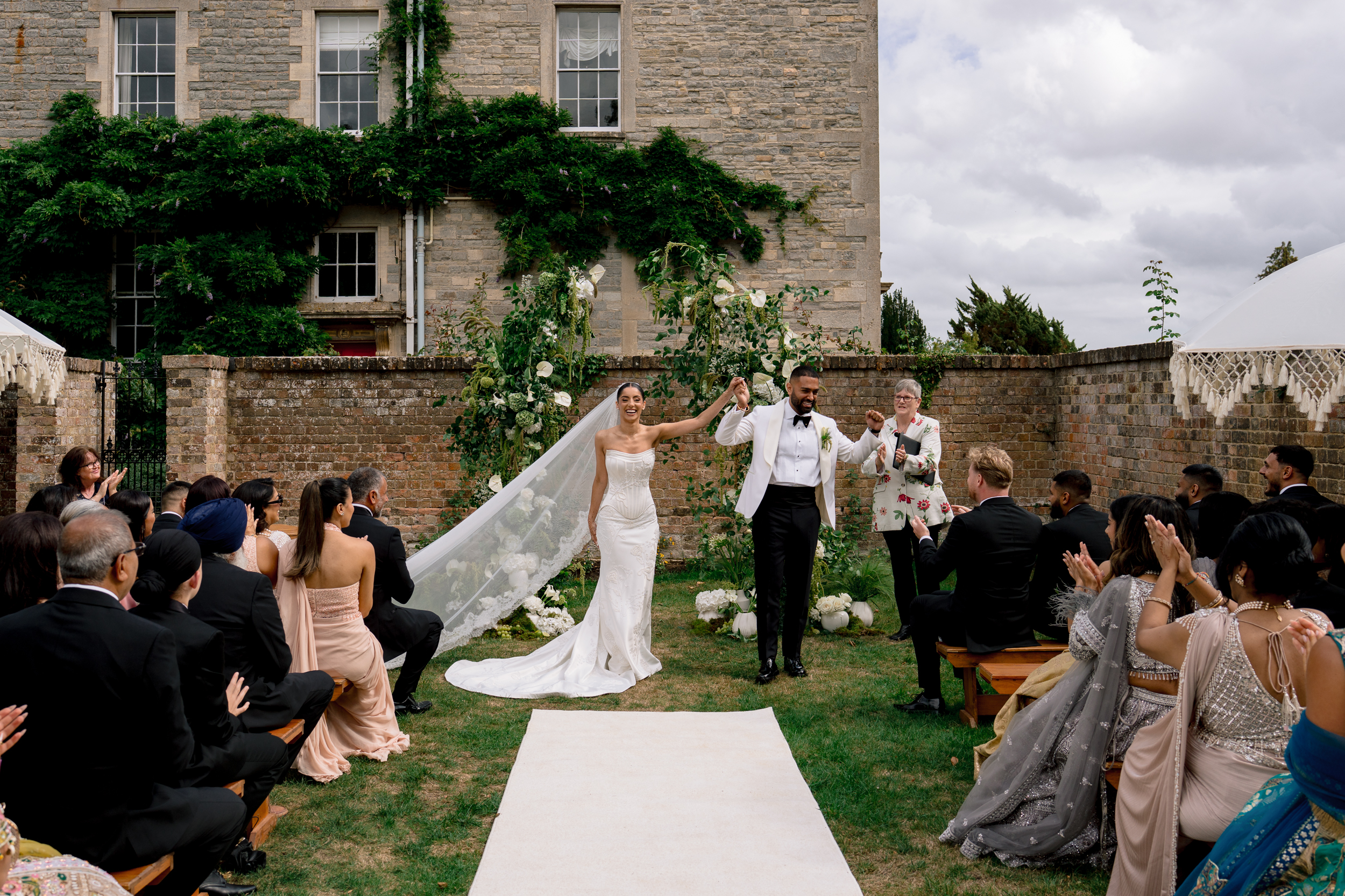 As a Cotswolds wedding photographer, there are certain venues that always feel like coming home. And an Elmore Court wedding is exactly that for me. It’s hands down one of my favourite venues to shoot, and I feel incredibly lucky that it’s local. But Amrita and Rossane’s wedding brought something completely new: my very first outdoor ceremony at Elmore.