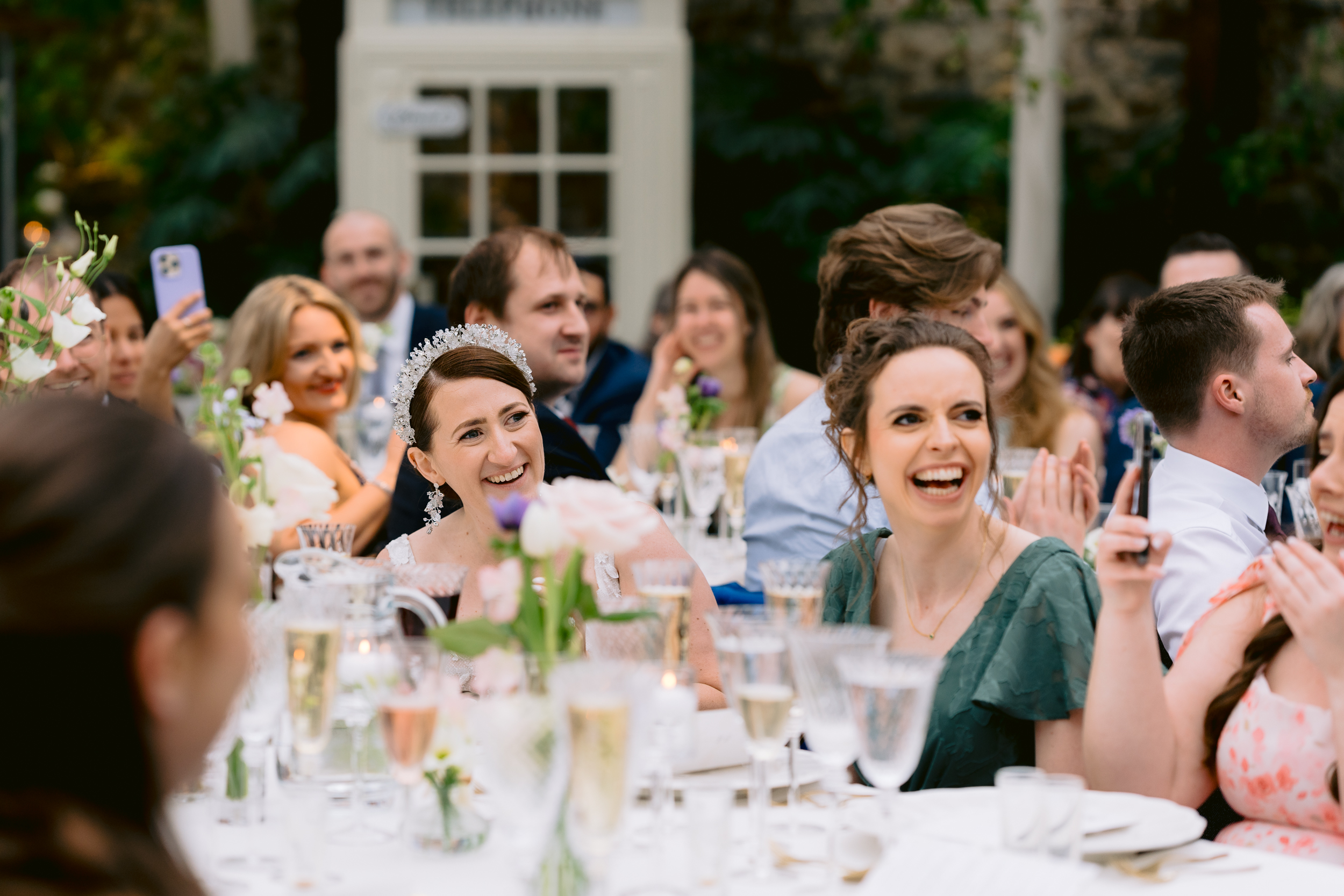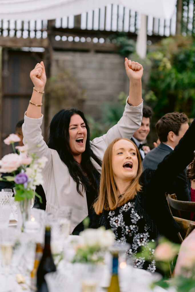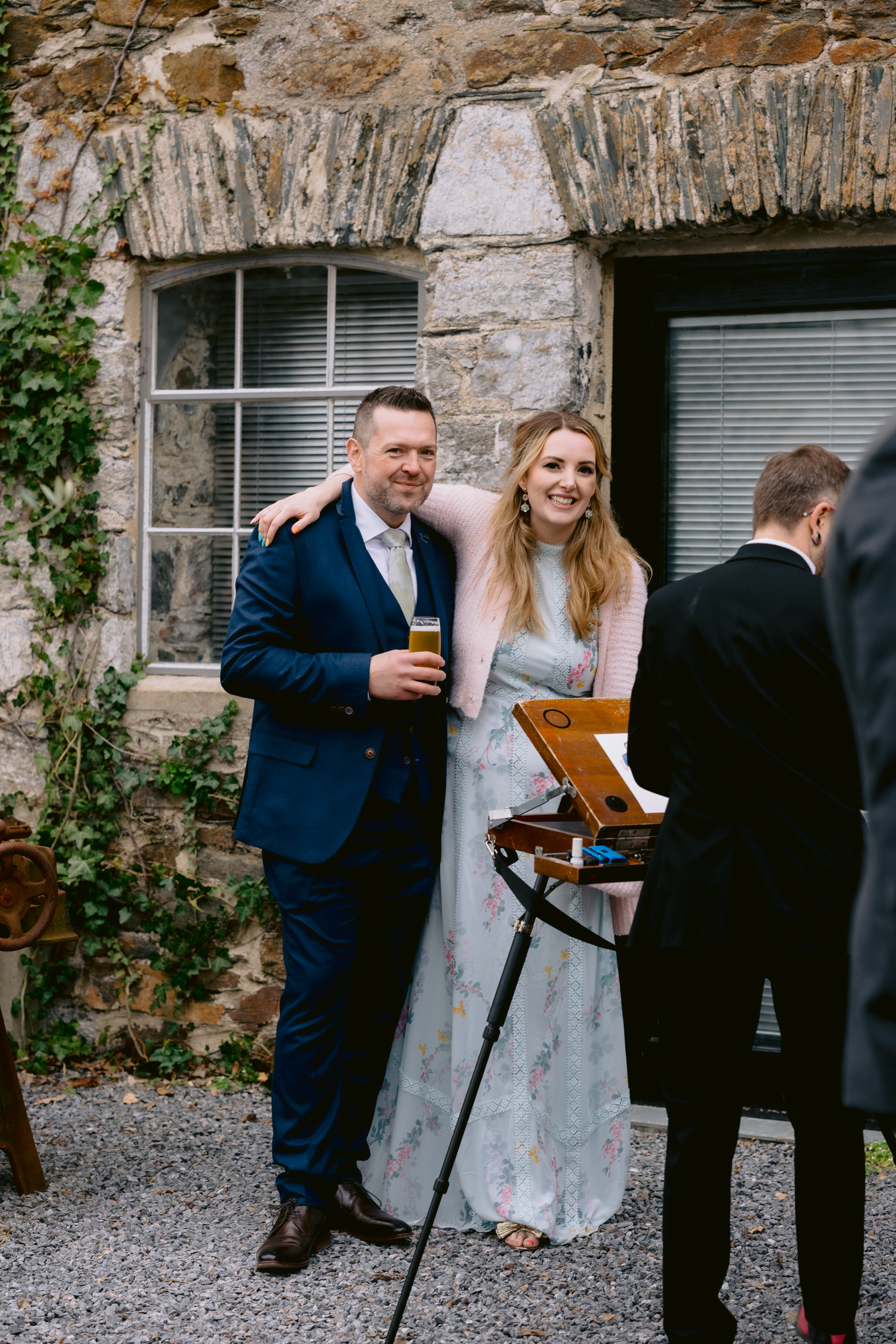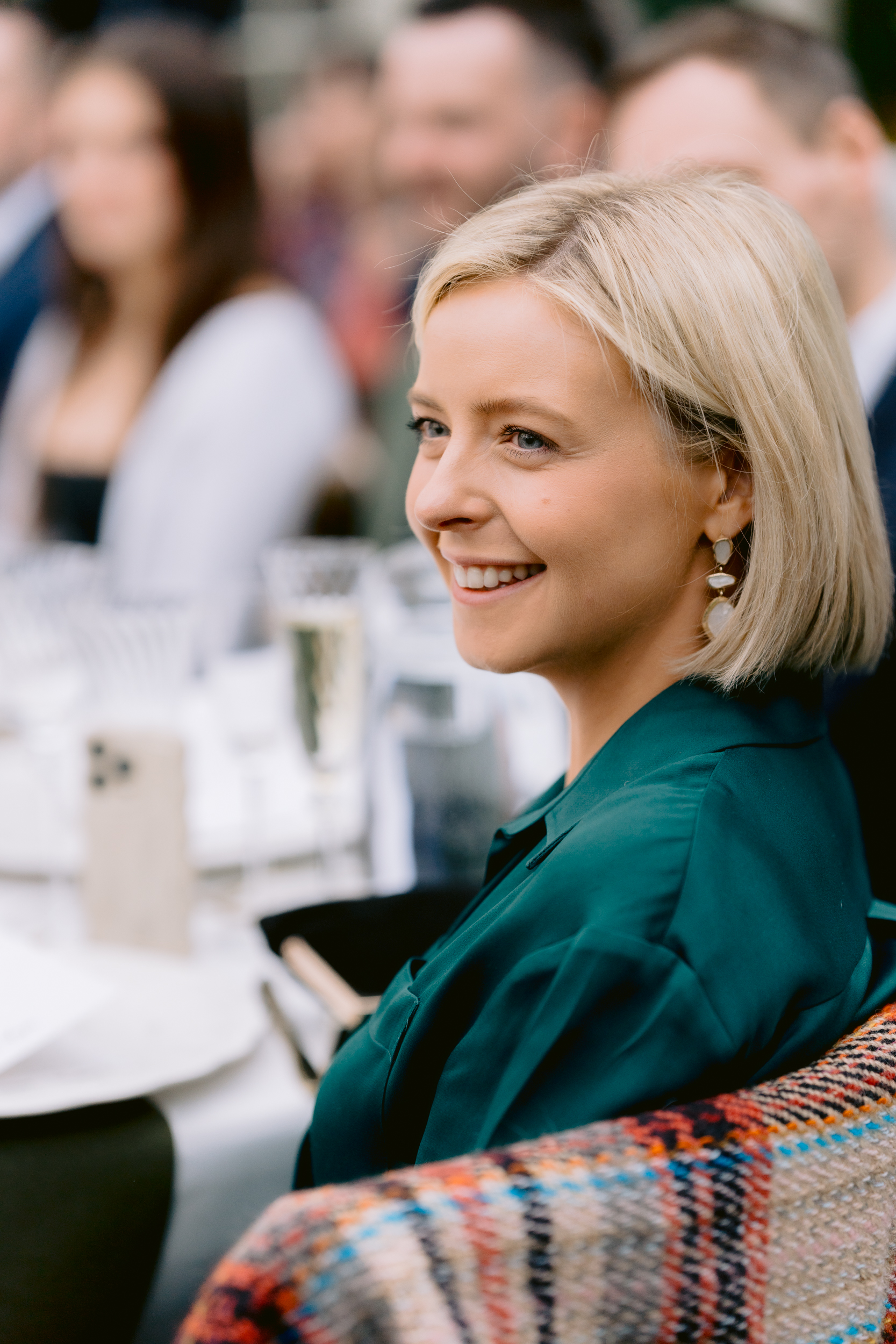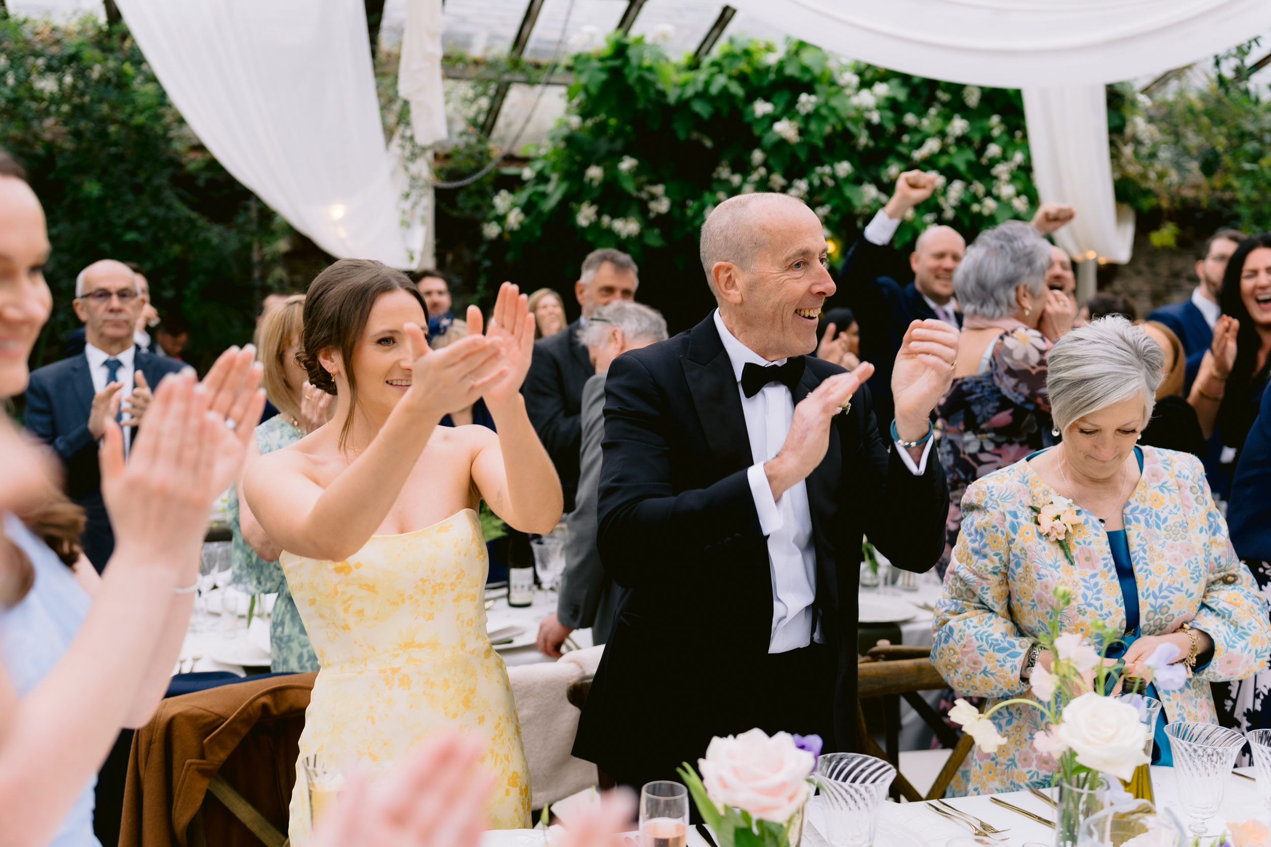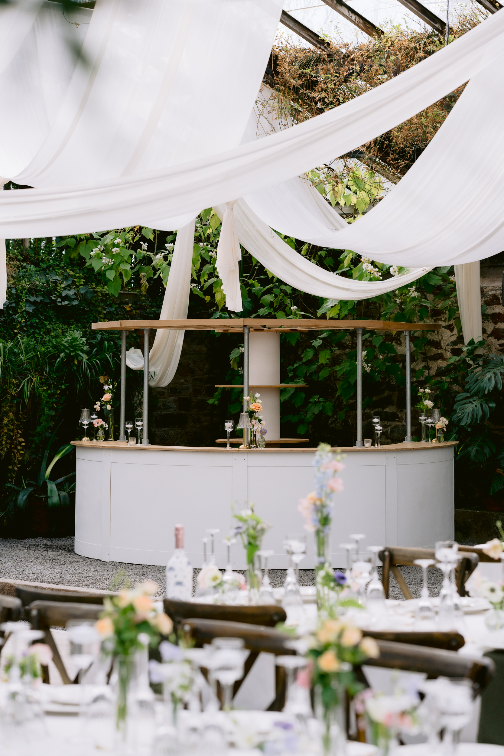 The ceremony was humorously led by celebrant Olivia Coleman, in a greenhouse filled with ponds, plants and lovely guests cheering on the happy couple.