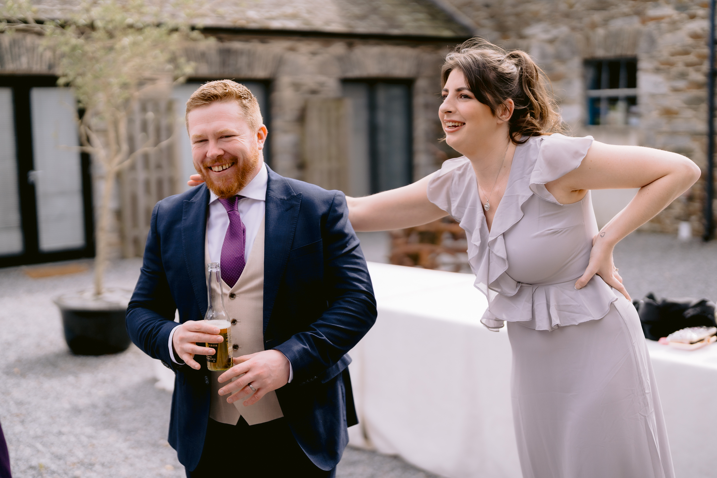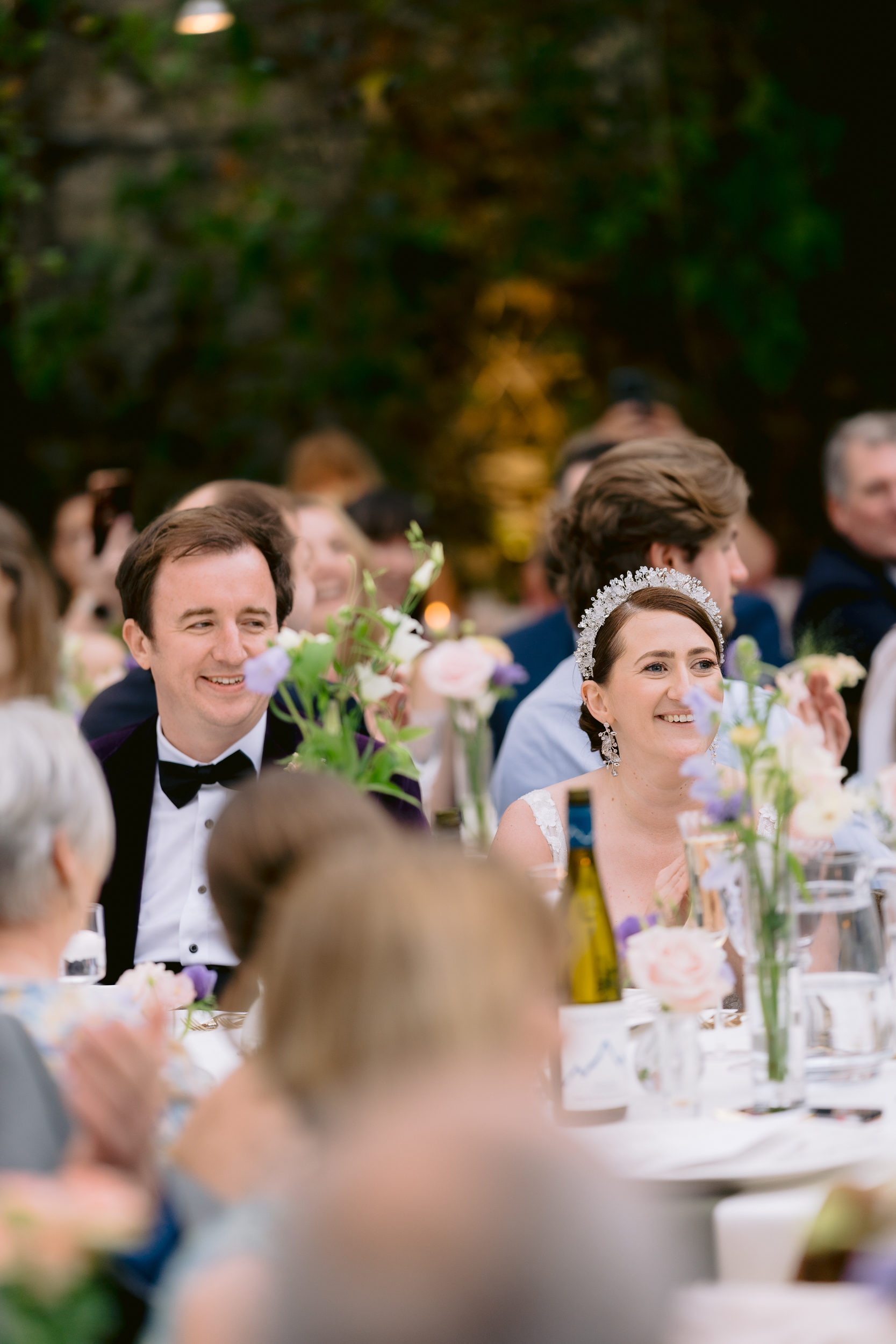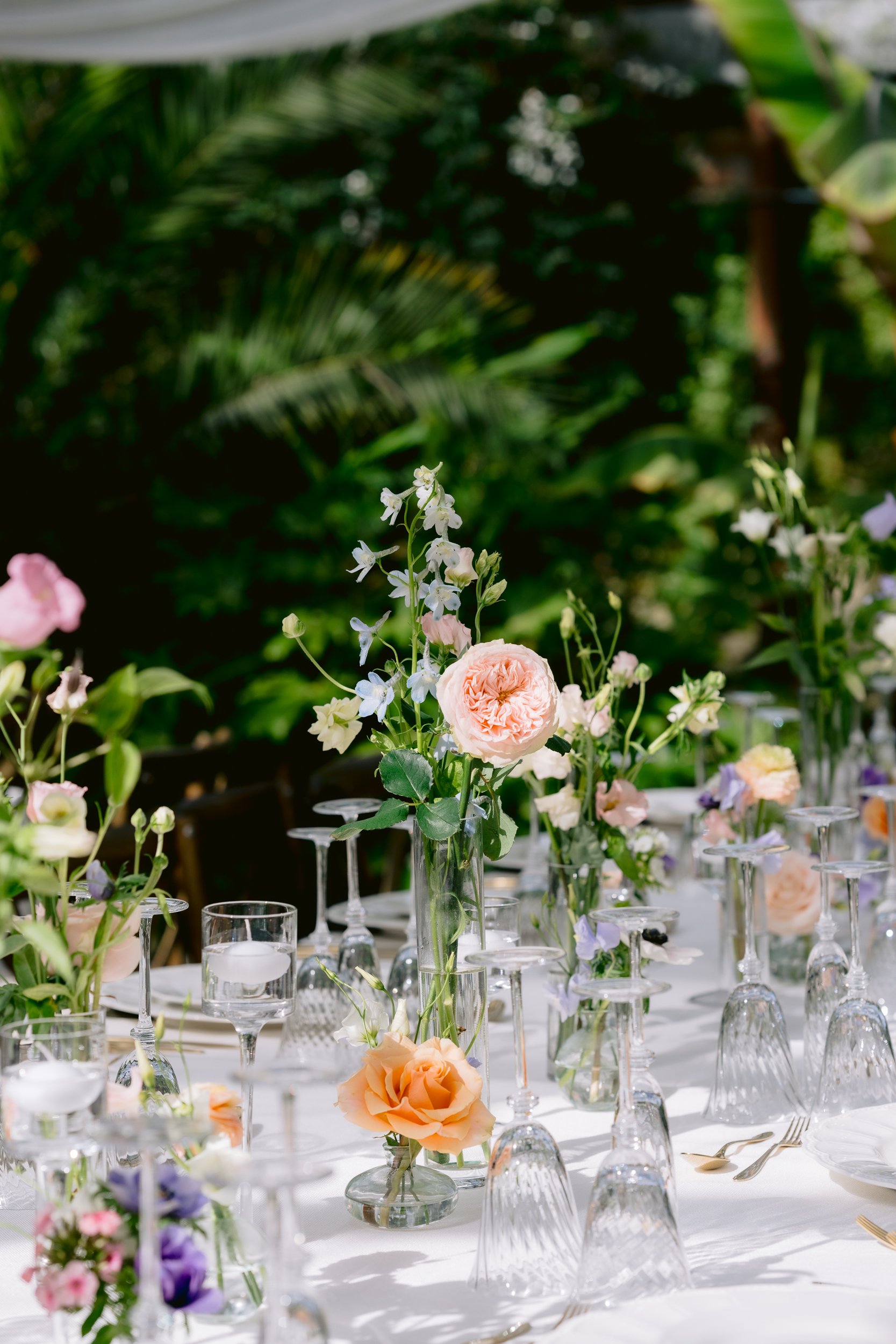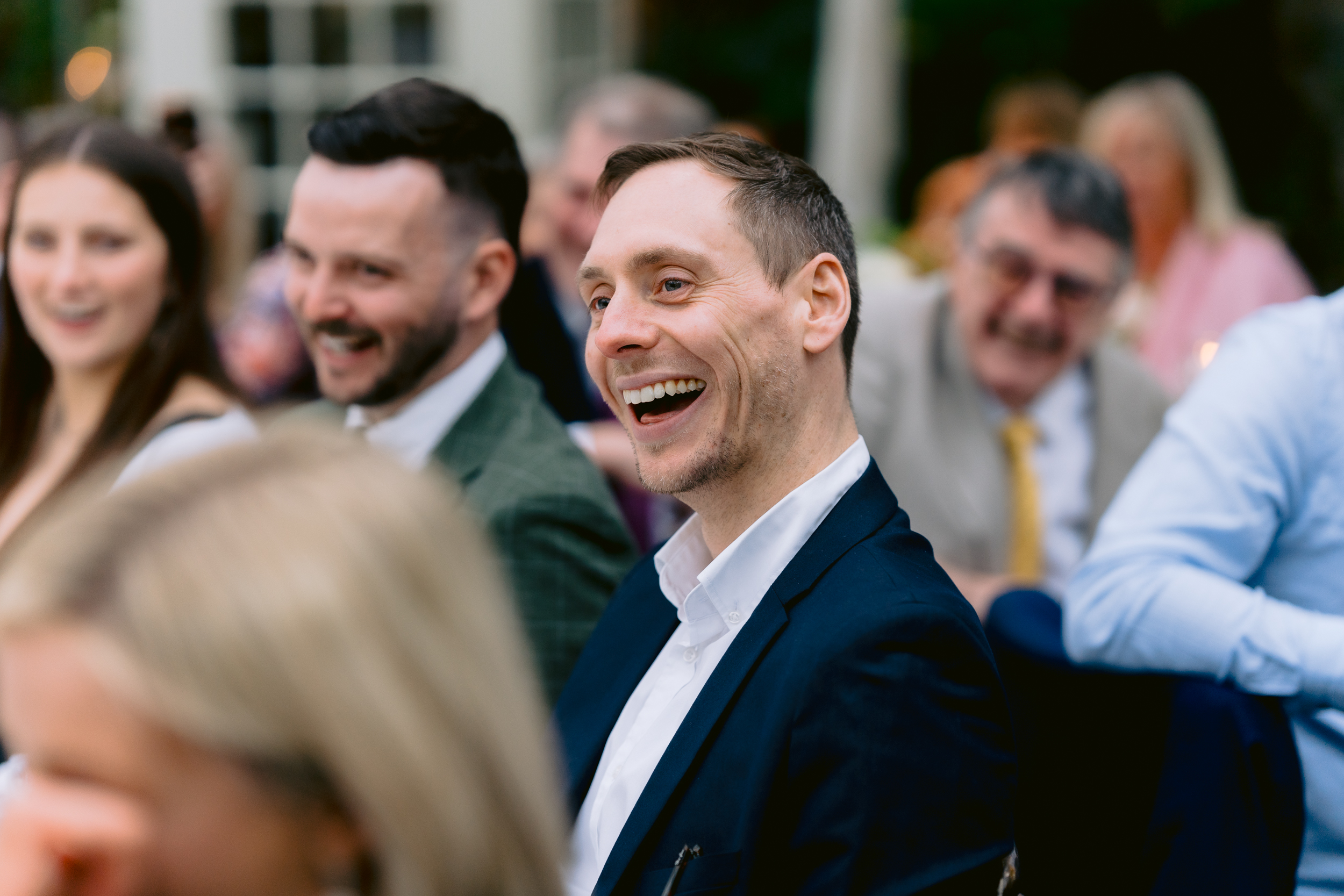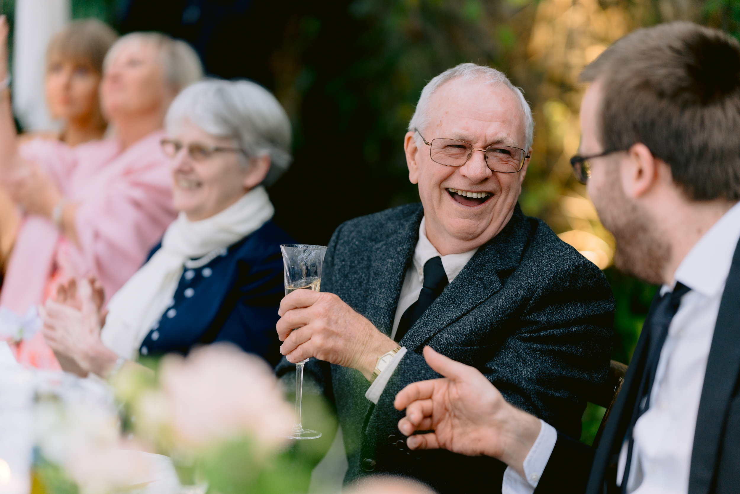 The ceremony was humorously led by celebrant Olivia Coleman, in a greenhouse filled with ponds, plants and lovely guests cheering on the happy couple.