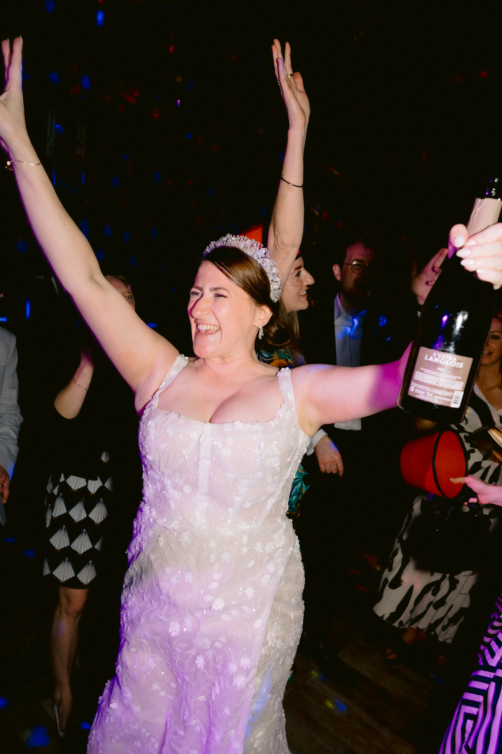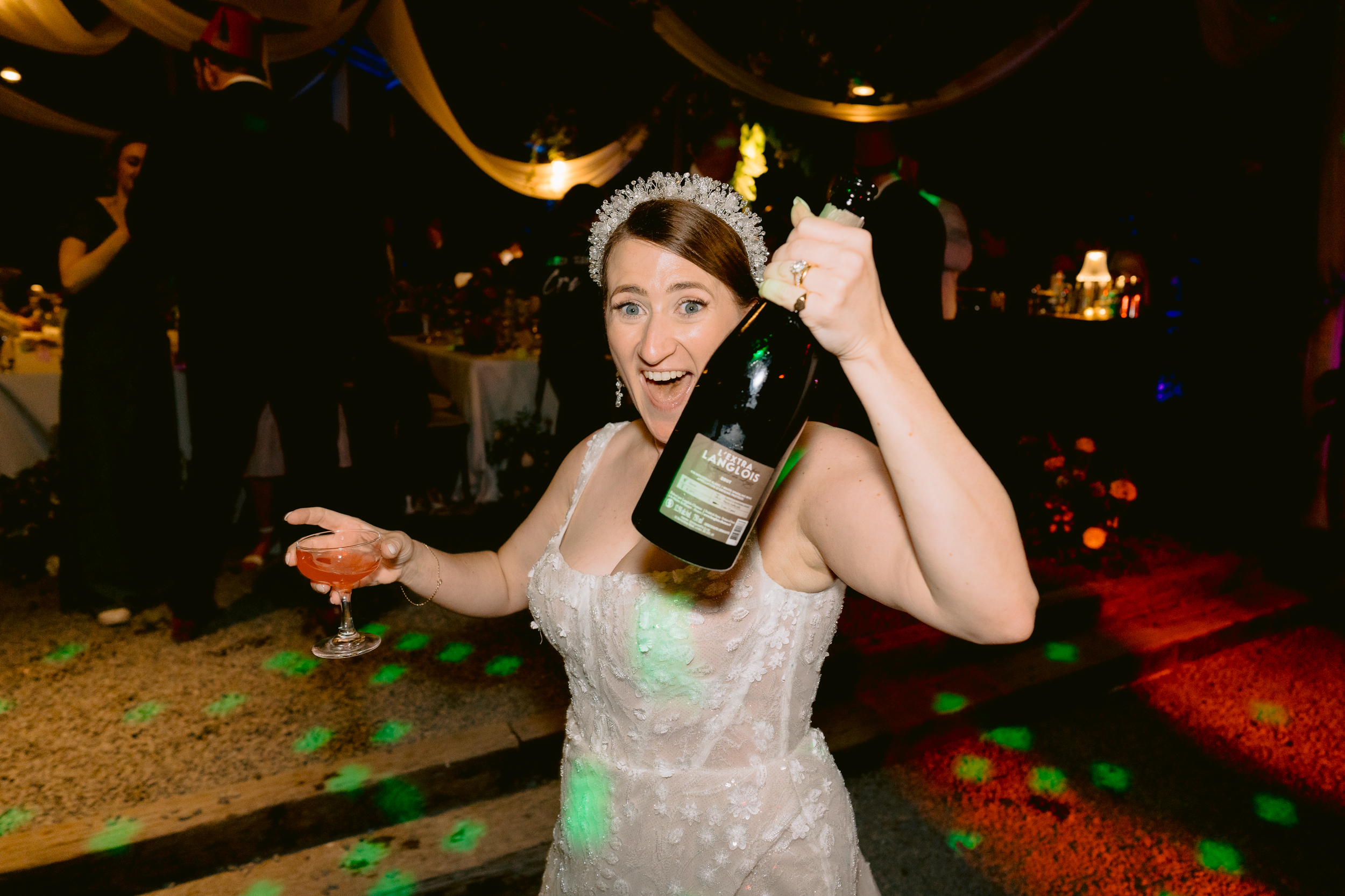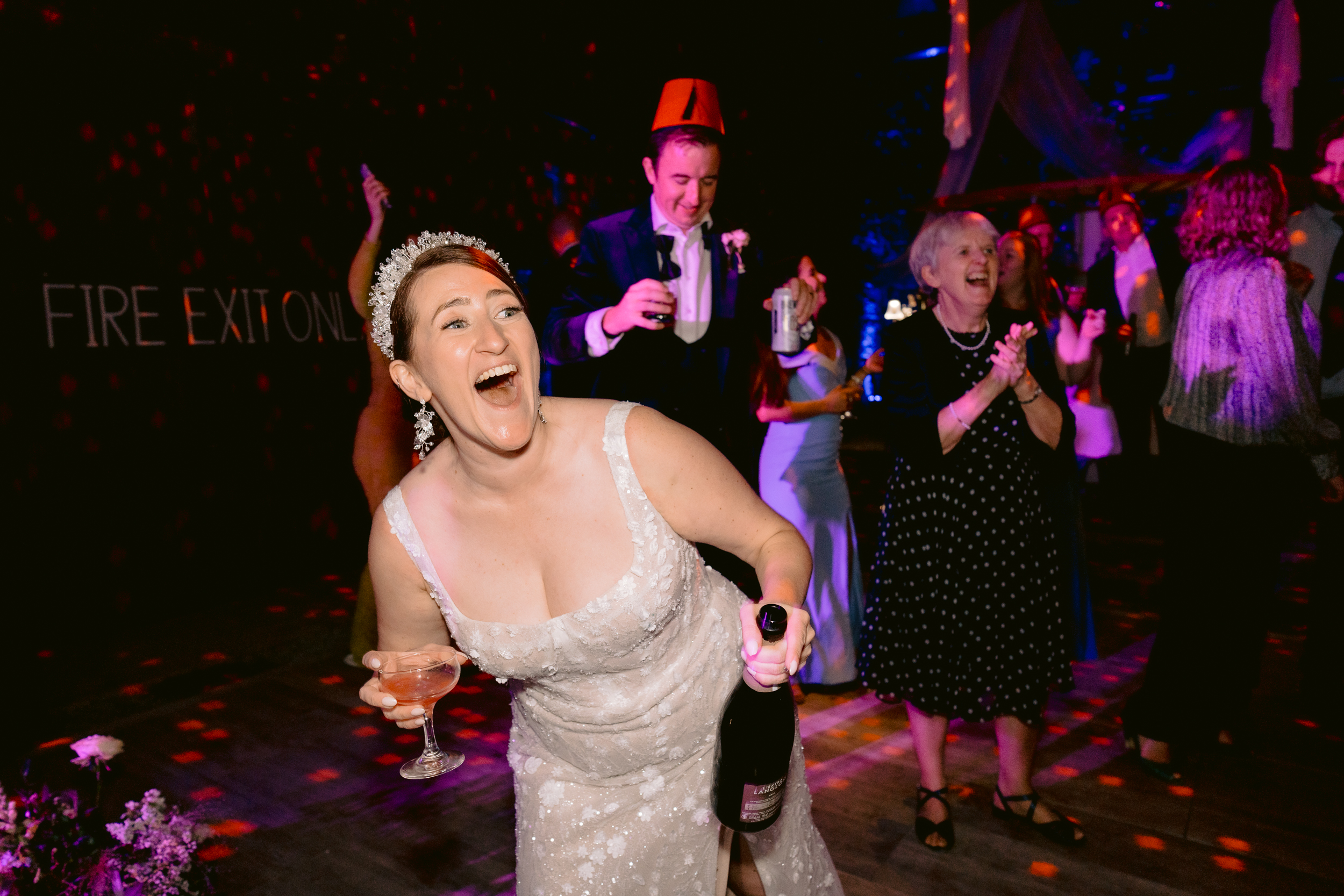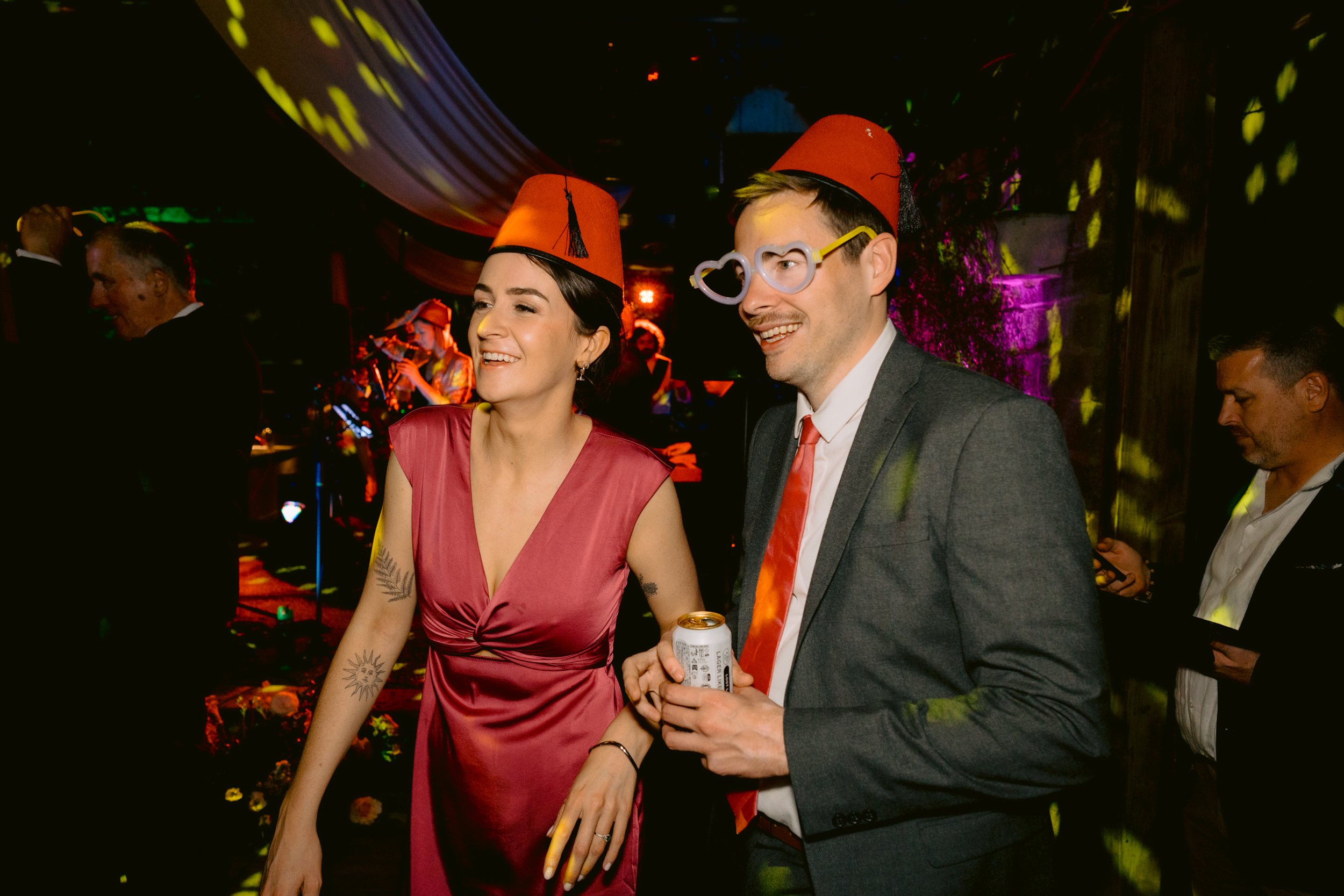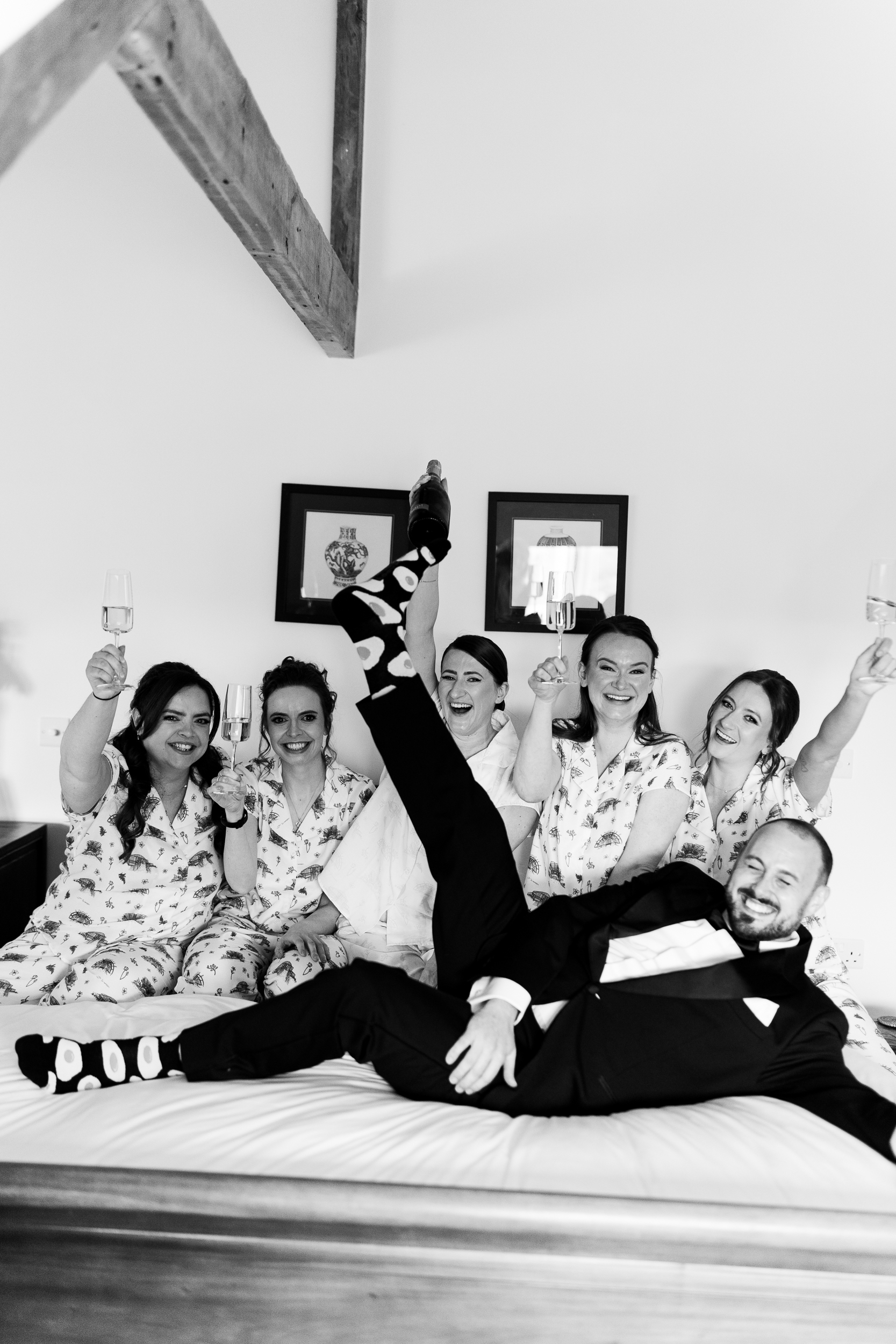 The couple’s attention to detail was incredible. They used illustrations of the venue on everything from their morning pyjamas to the bride’s phone case, to the bottles at the wedding breakfast. And finally, glow stick sunglasses and flashing ‘rings’ to light up the dancefloor. The team on the day was fantastic, with Georgina Rose Events as the wedding planner, Etiquette Events on the styling, and MB Weddings & Events on Content Creation.