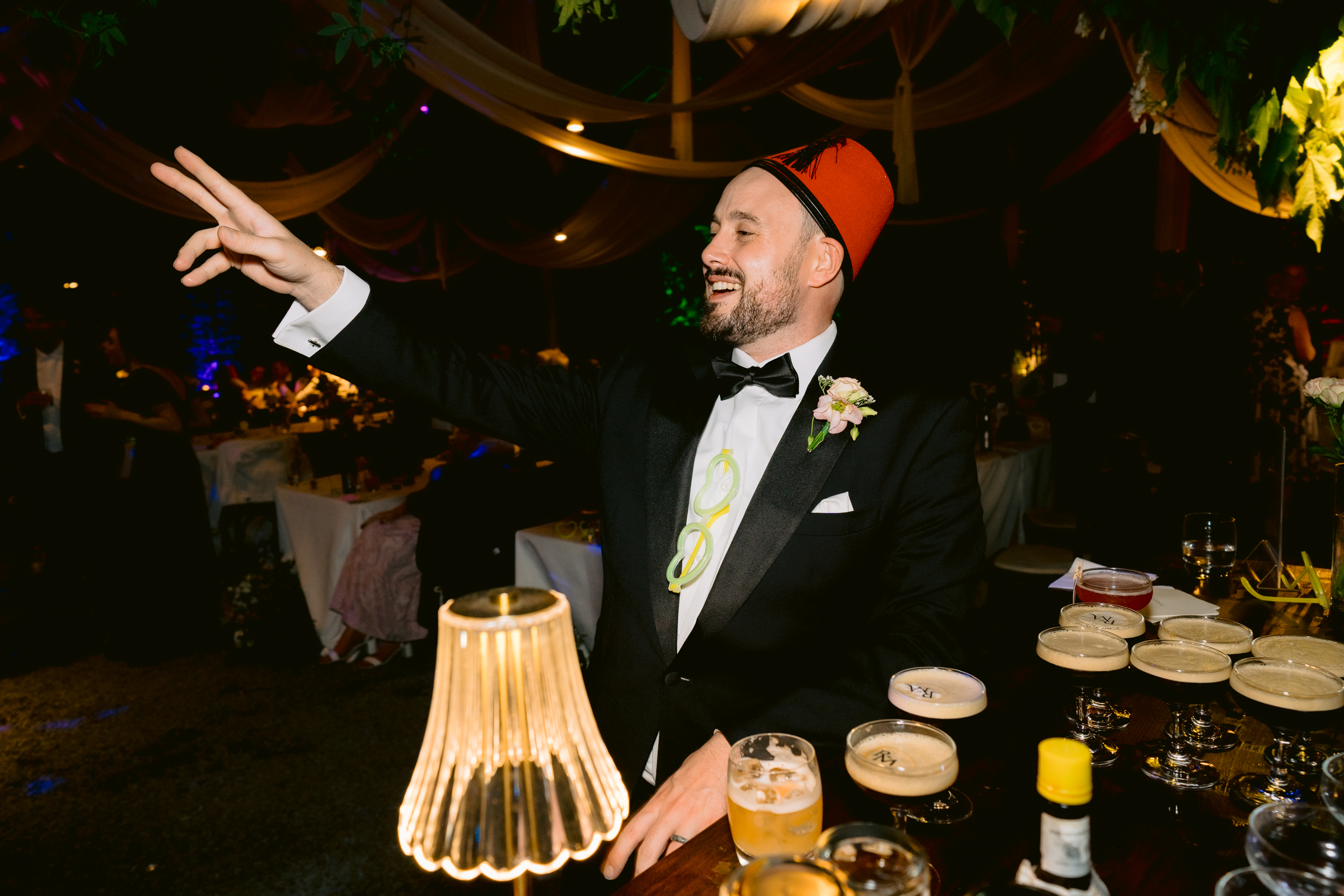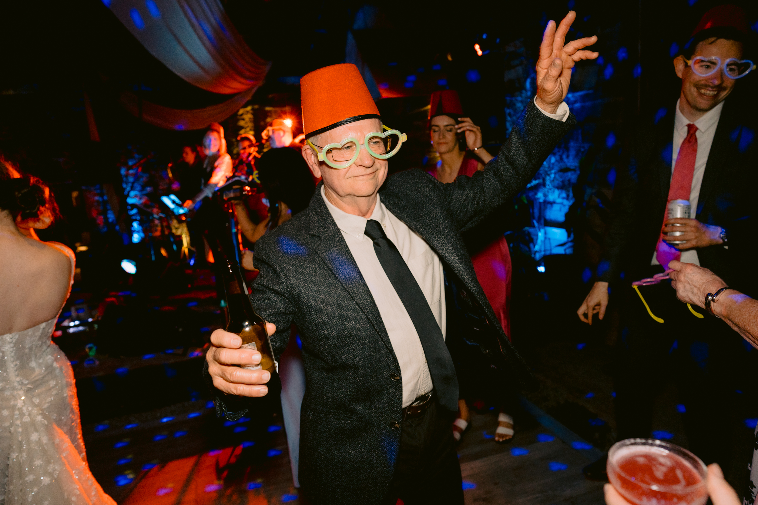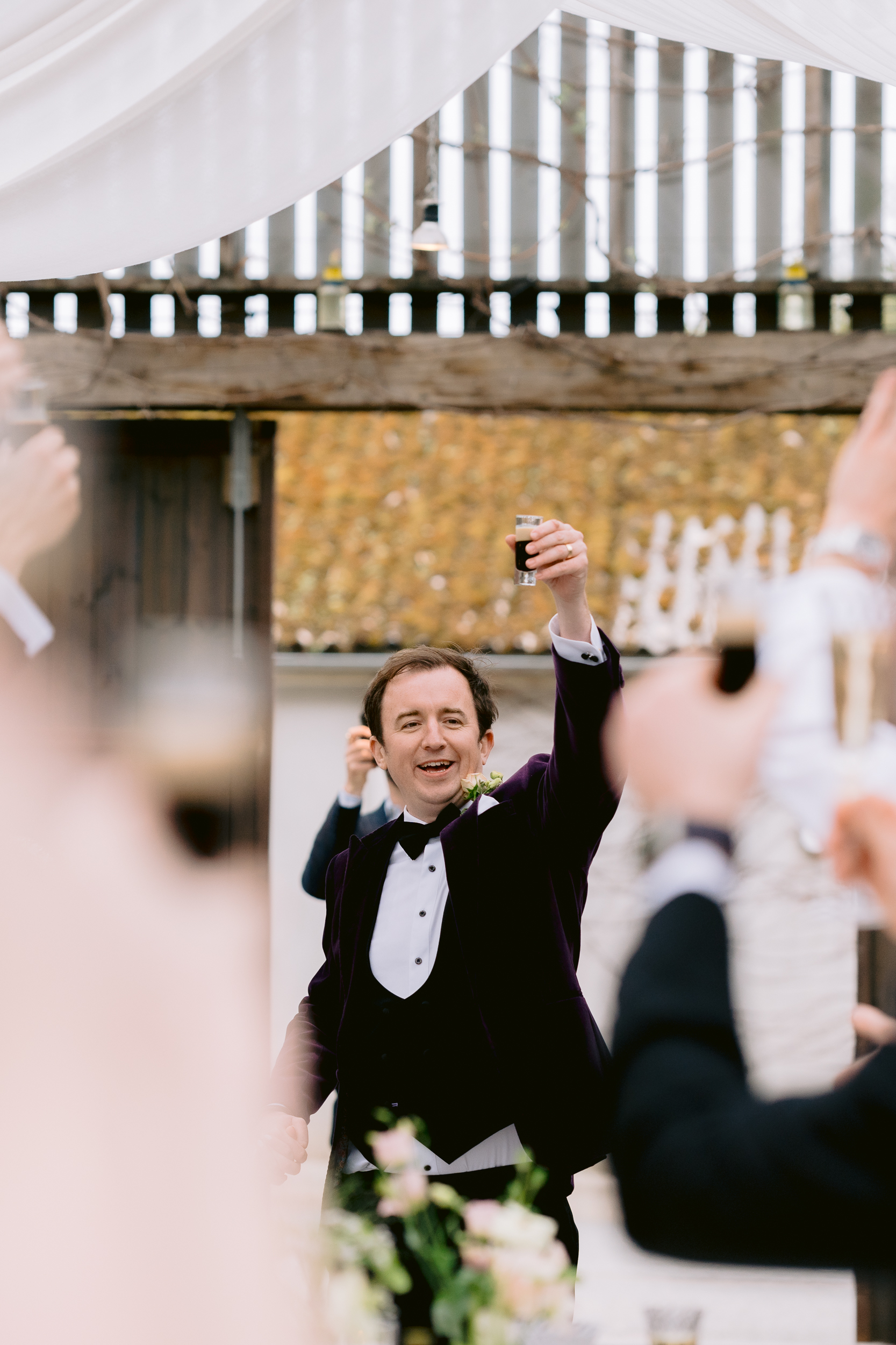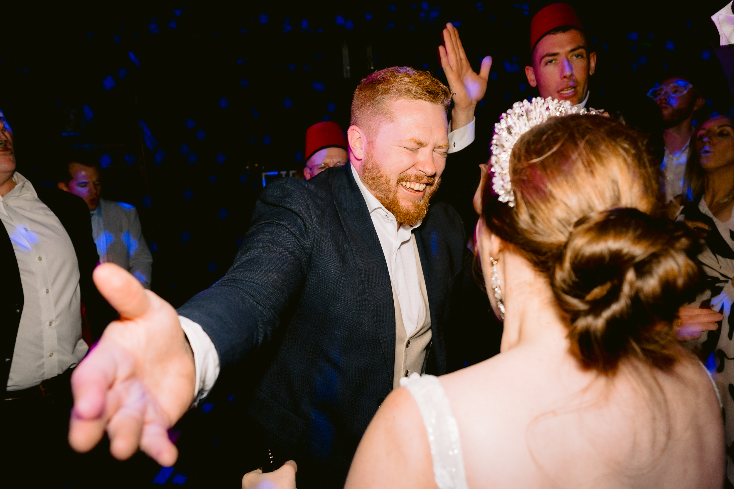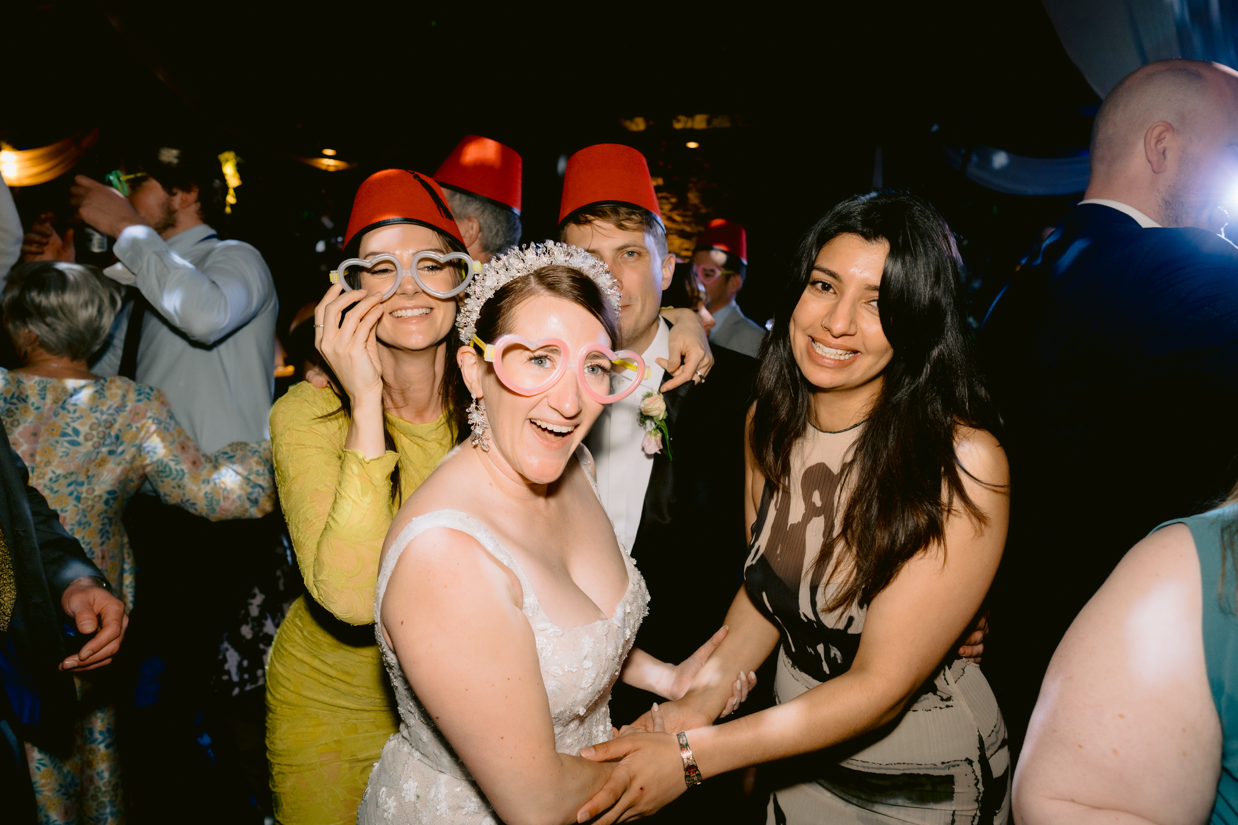 The couple’s attention to detail was incredible. They used illustrations of the venue on everything from their morning pyjamas to the bride’s phone case, to the bottles at the wedding breakfast. And finally, glow stick sunglasses and flashing ‘rings’ to light up the dancefloor. The team on the day was fantastic, with Georgina Rose Events as the wedding planner, Etiquette Events on the styling, and MB Weddings & Events on Content Creation.