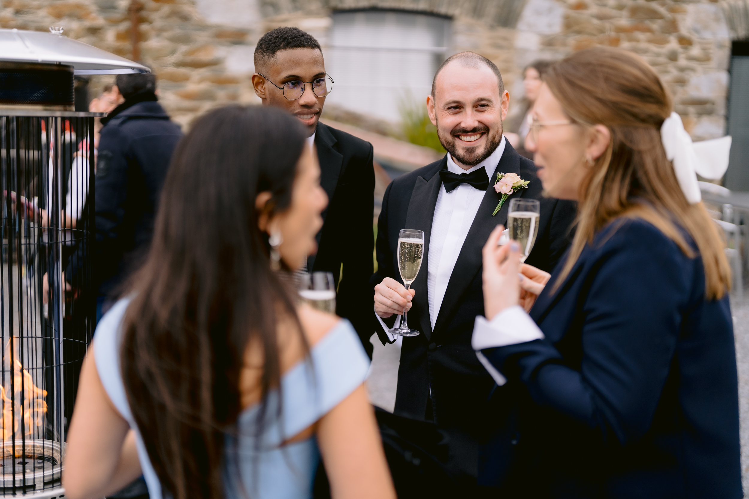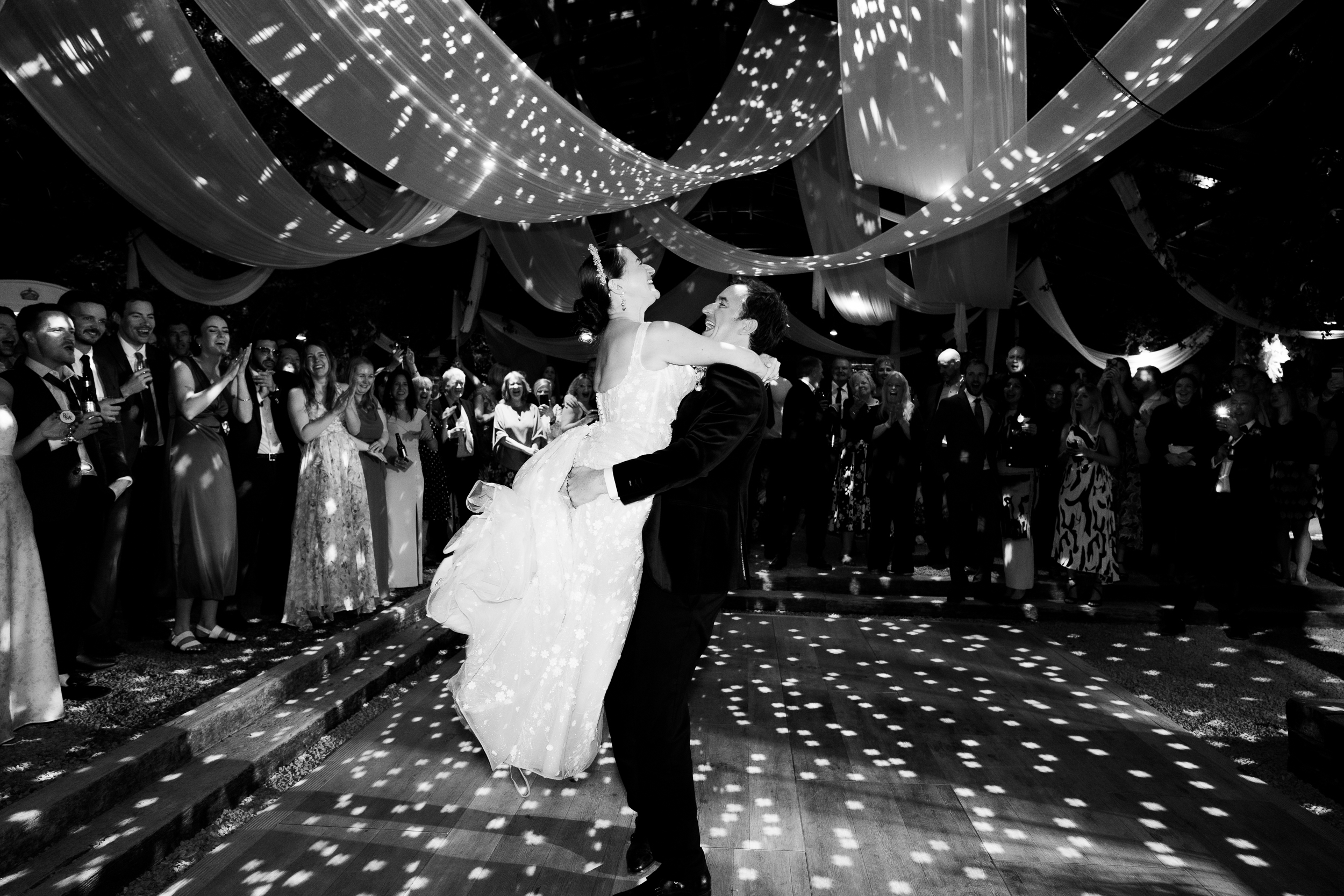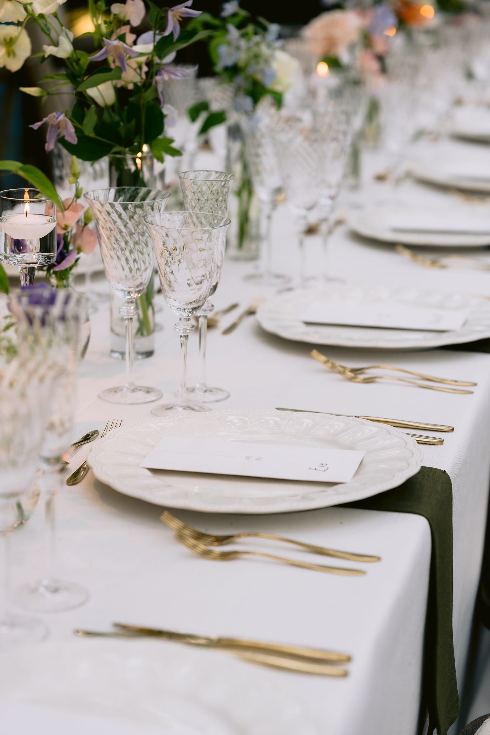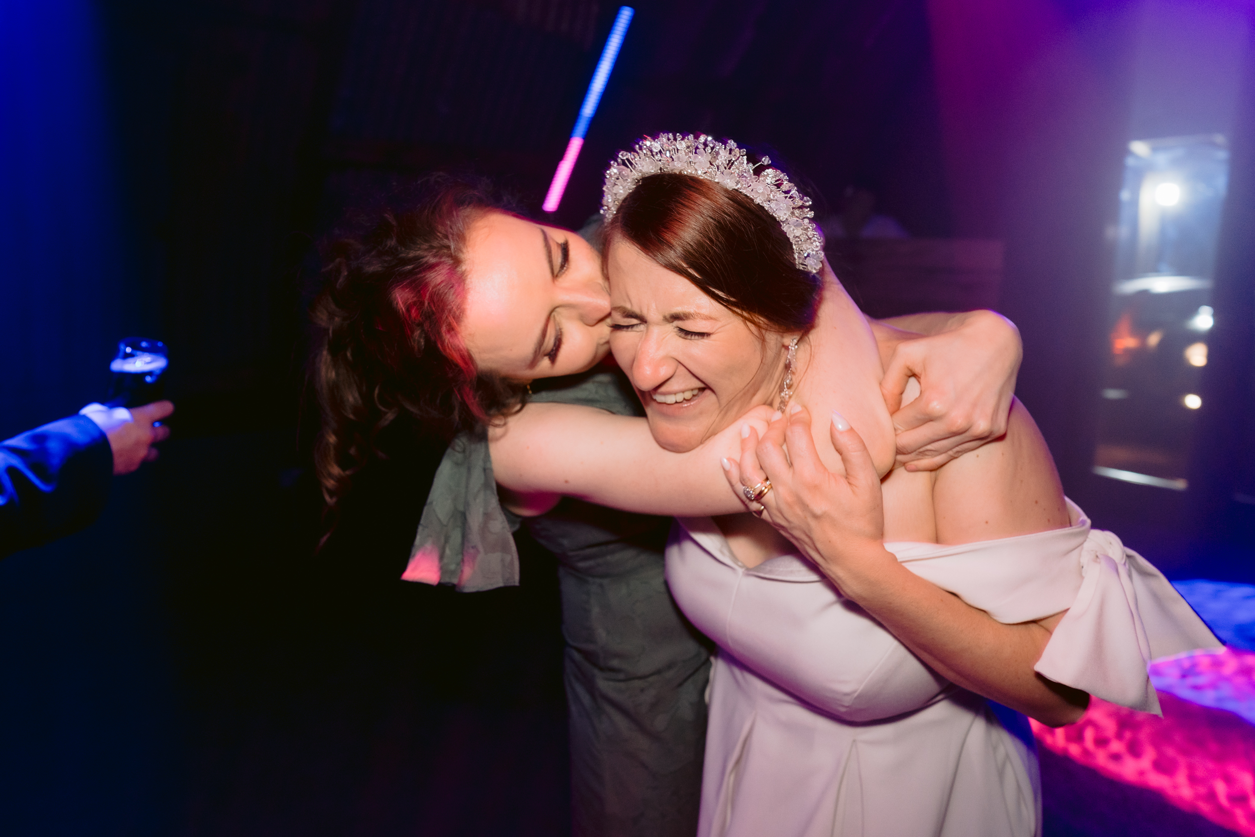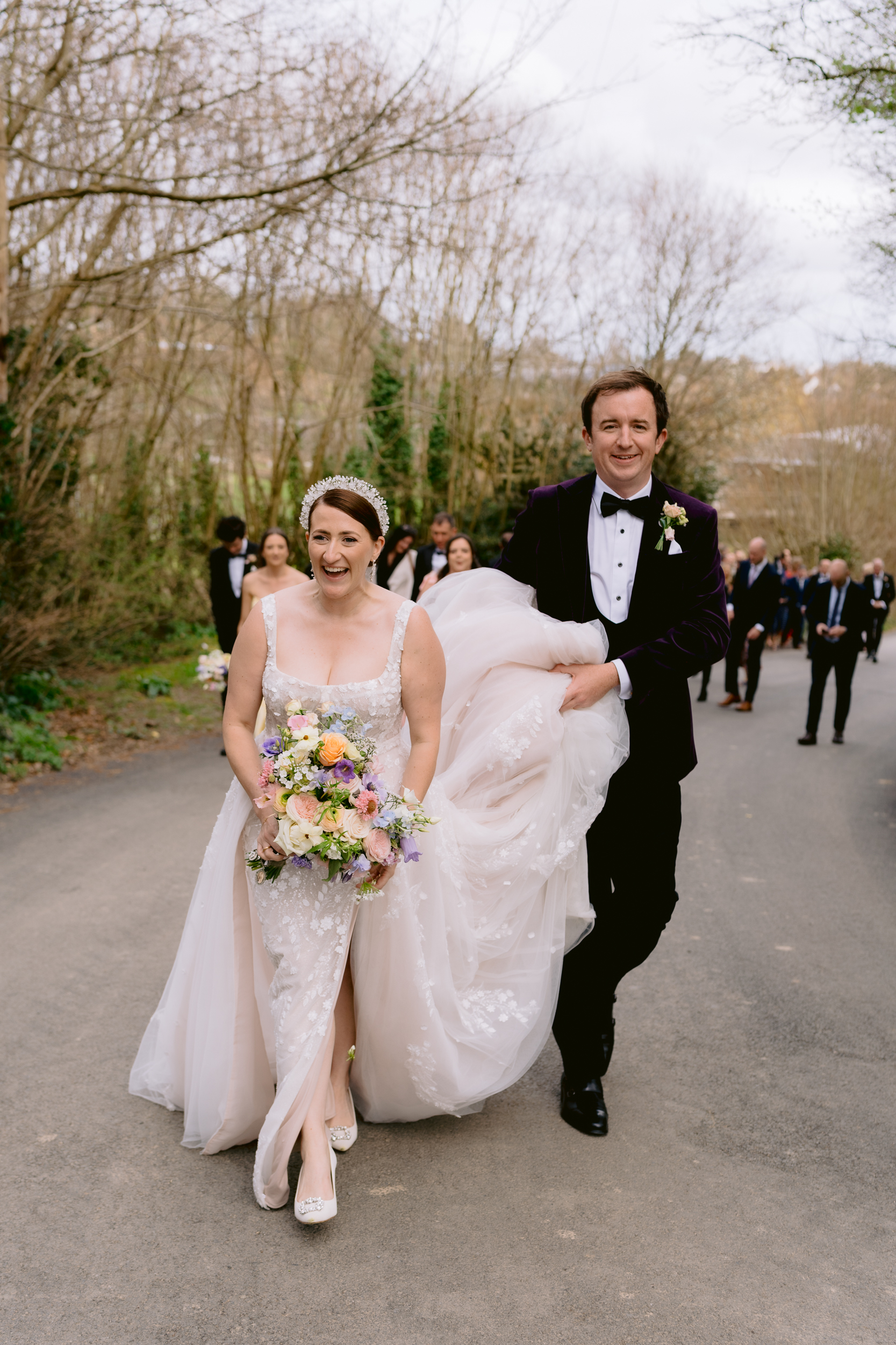 The couple’s attention to detail was incredible. They used illustrations of the venue on everything from their morning pyjamas to the bride’s phone case, to the bottles at the wedding breakfast. And finally, glow stick sunglasses and flashing ‘rings’ to light up the dancefloor. The team on the day was fantastic, with Georgina Rose Events as the wedding planner, Etiquette Events on the styling, and MB Weddings & Events on Content Creation.