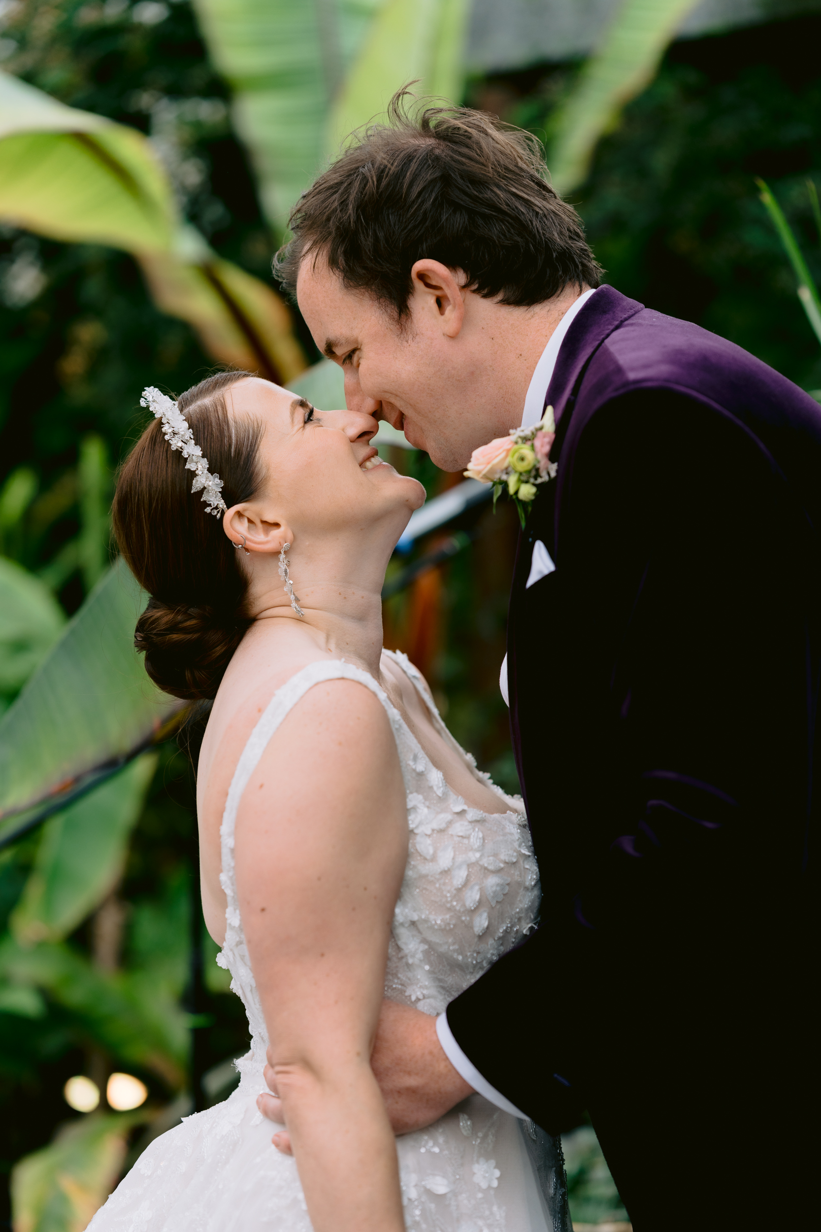 Spoiler alert… This wedding is spectacular! Rowena & Matthew came all the way from New Zealand to exchange vows at this truly unique venue in Devon. Anran has also been on my bucket list as a wedding photographer for a few years now. And it did not disappoint. The glasshouse where they held the reception adorned with drapes and stunning florals. The tropical plants in both the ceremony and reception space creates a very vibrant and green backdrop to start with. My favourite colour to edit! What I love about this as a UK wedding venue, is you still get the feeling of being outdoors, surrounded by nature, when the weather is less favourable.