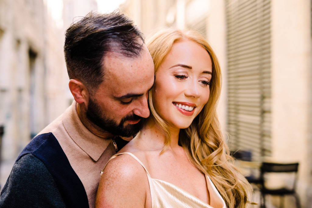 It was incredibly hot. 35 degrees to be precise! But Gemma dazzled in an ‘extra’ (her words) gold evening dress. Doesn’t she just ooze class? Your pre-wedding shoot can be whatever vibe you choose. Chic city? Relaxed beach? It’s entirely up to you! It should reflect you as a couple, as well as highlight the assets of your location.