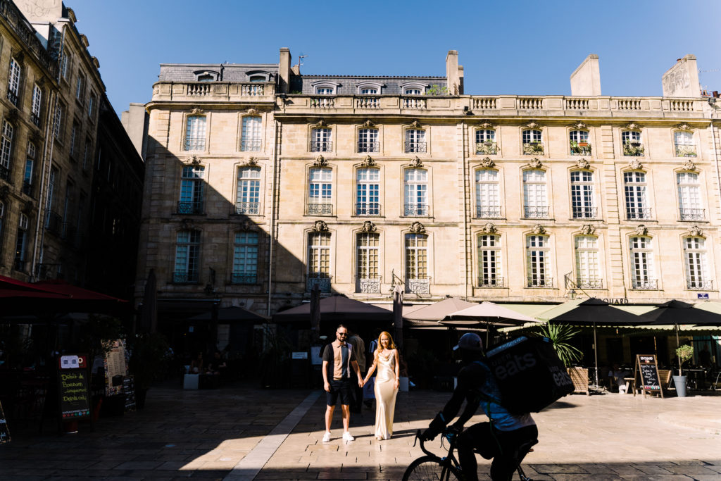 A destination wedding is so much more than the one day! Most of your guests will make a weekend out of it, at the very least! And you most definitely will. So why not capture that exciting anticipation the day BEFORE your wedding. Mike + Gemma decided to do just that. We strolled through the streets of Bordeaux in search of photogenic spots. After all, the location is what drew you to your venue! Might as well ‘en profiter’ (that is, make the most of it).