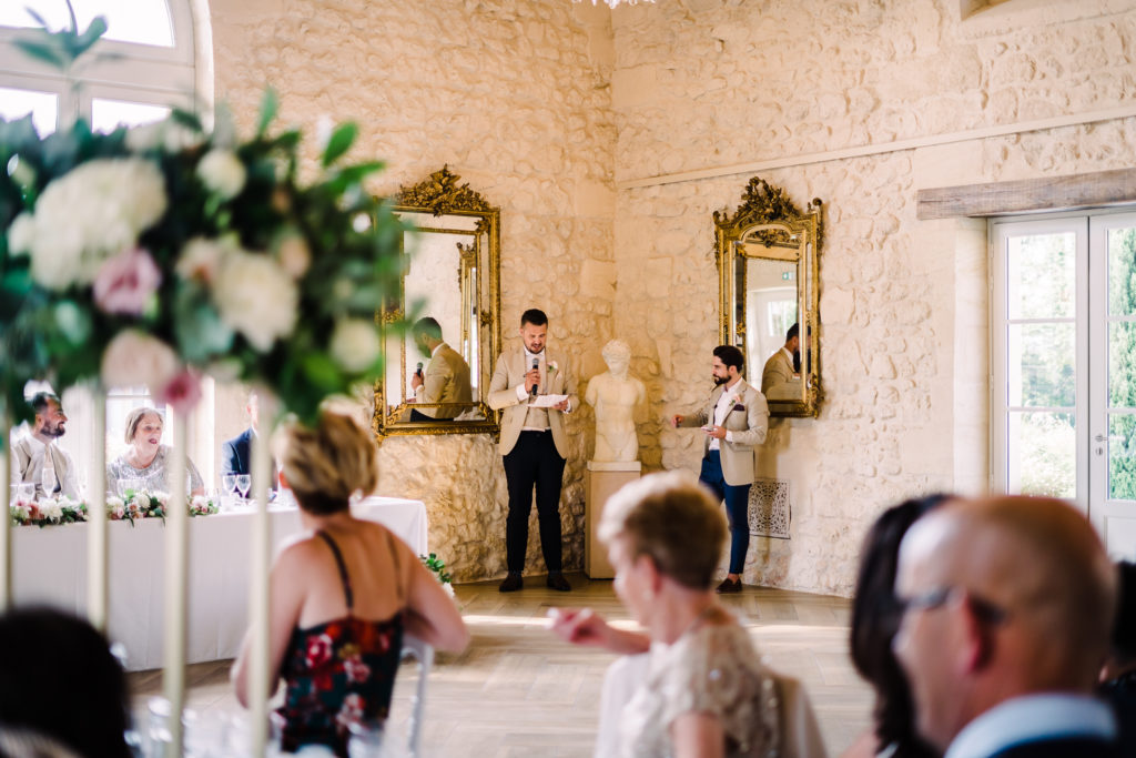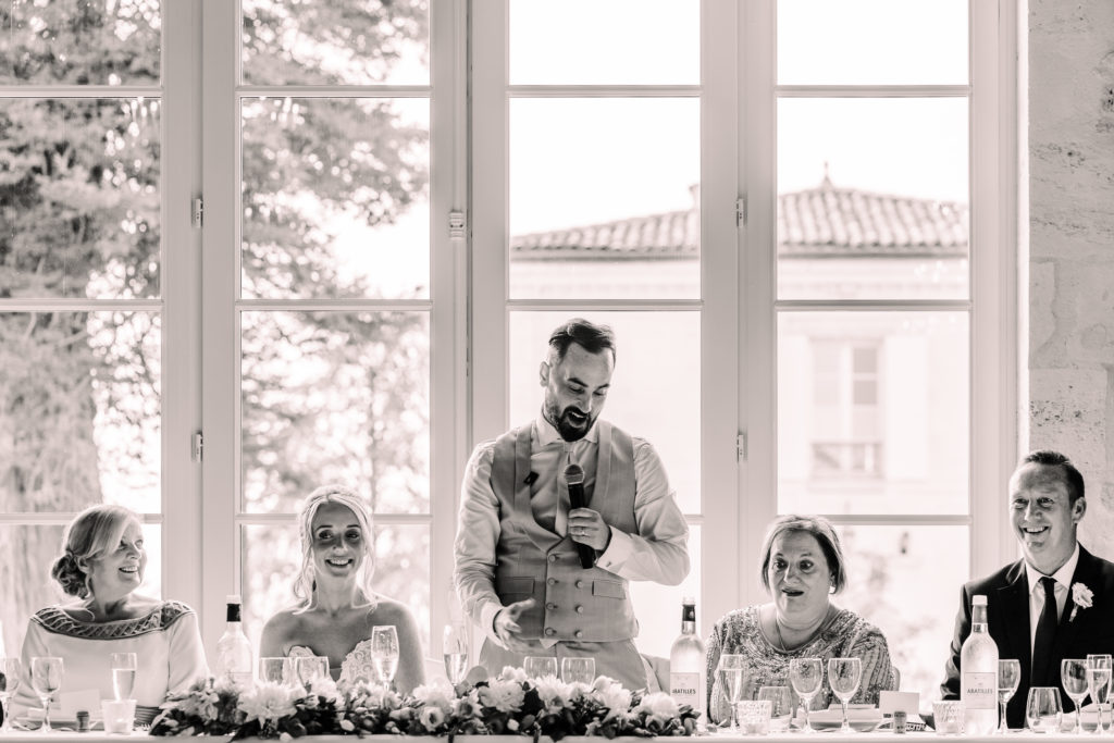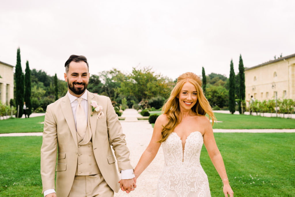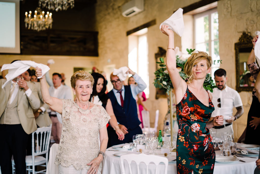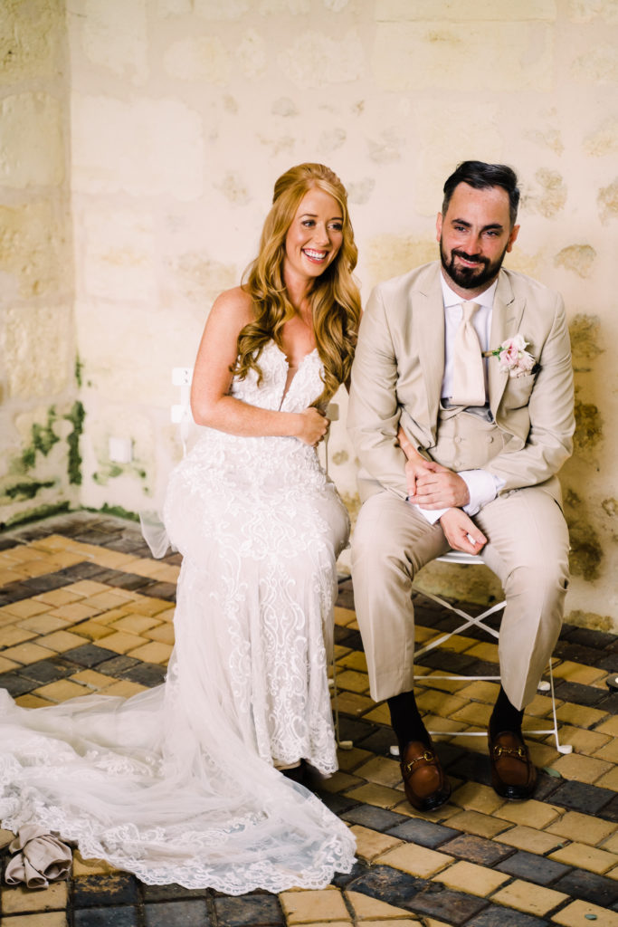 Gemma + Mike brought Essex and London to Bordeaux! Or at least the party lifestyle they enjoy back home was transported to their destination wedding. The reception kicked off with a champagne tower and escalated from there. By the end of the speeches, all the guests (yes, grandma included) were waving napkins in the air. Shortly after dinner, dancing to Luke Burr‘s live renditions. And by 2am… well let’s just say an ambulance was also called.