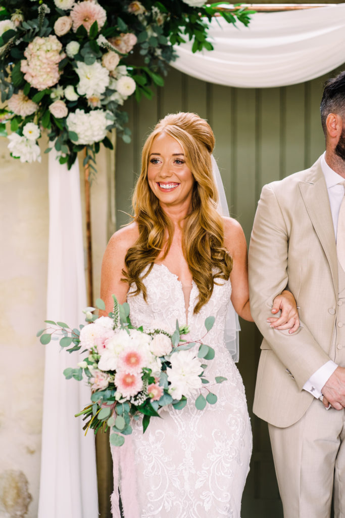 Lisa Lister lead a deeply personalised ceremony tailored to Mike + Gemma’s love story. There were tears, but they were of joy and also lots of laughter. One of Gemma’s bridesmaids was unable to make the journey. For the best possible reason though, she’s pregnant! And she watched the entire ceremony on a video call. You may spot the phone poking down the aisle. Besides that, it was unplugged.