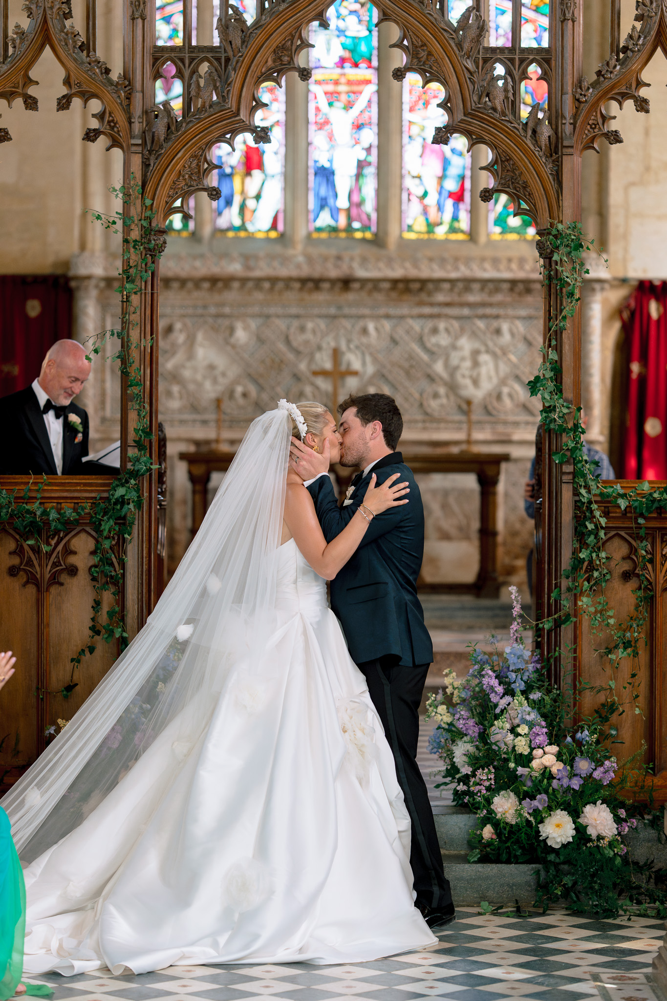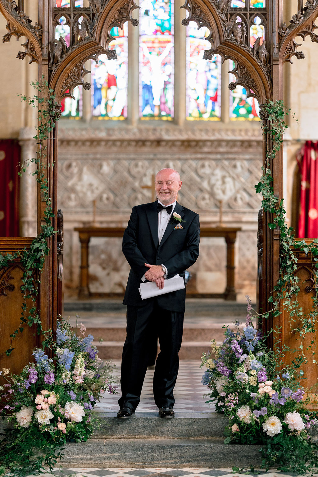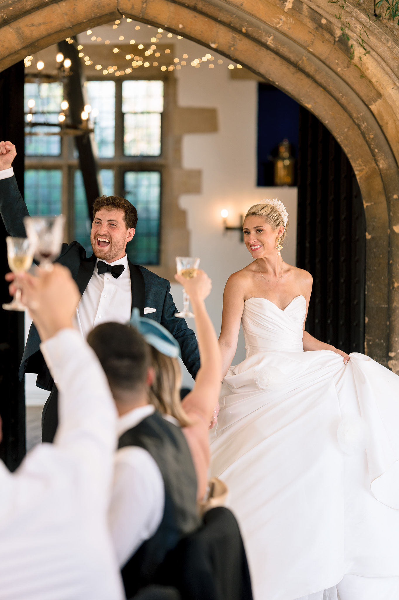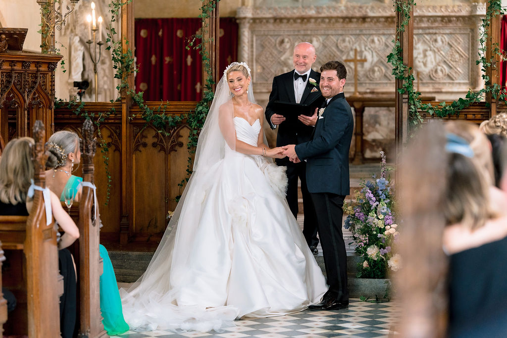 The wedding day itself was effortlessly elegant. With a timeless black-tie dress code perfectly suited to the grandeur of Sudeley Castle. Hope and Tristan chose to marry in the intimate castle church, steeped in history. It’s famously the burial place of Catherine Parr. Making the ceremony even more meaningful, Tristan’s father acted as celebrant, creating a deeply personal and emotional moment.