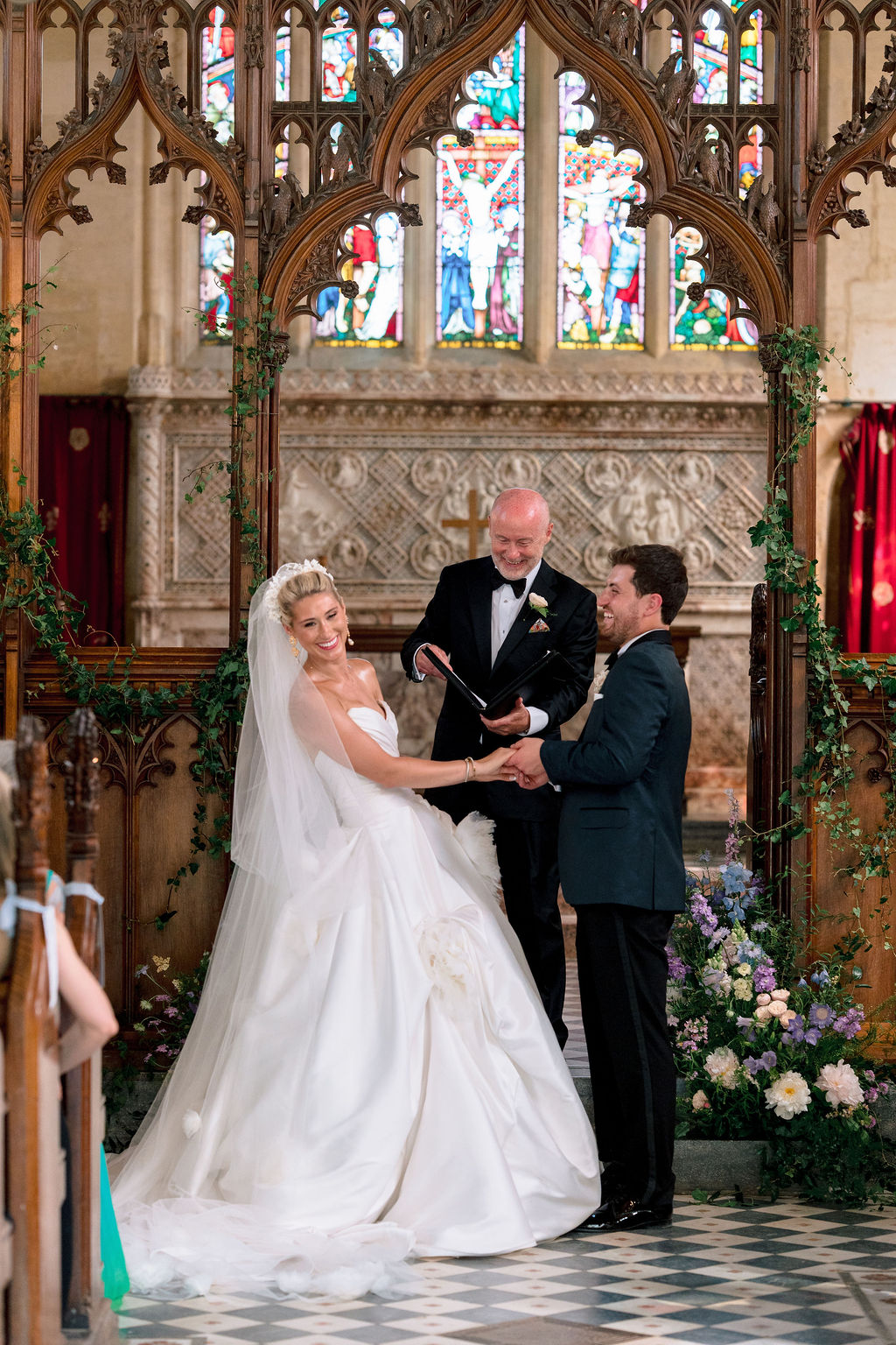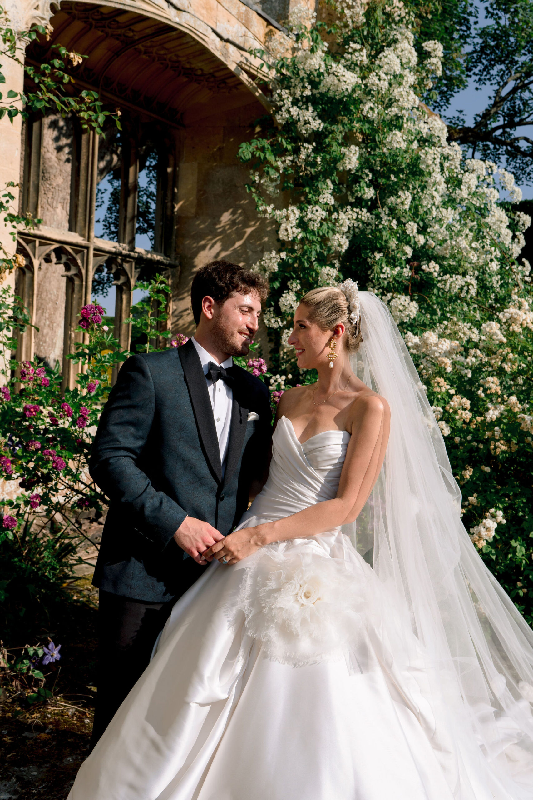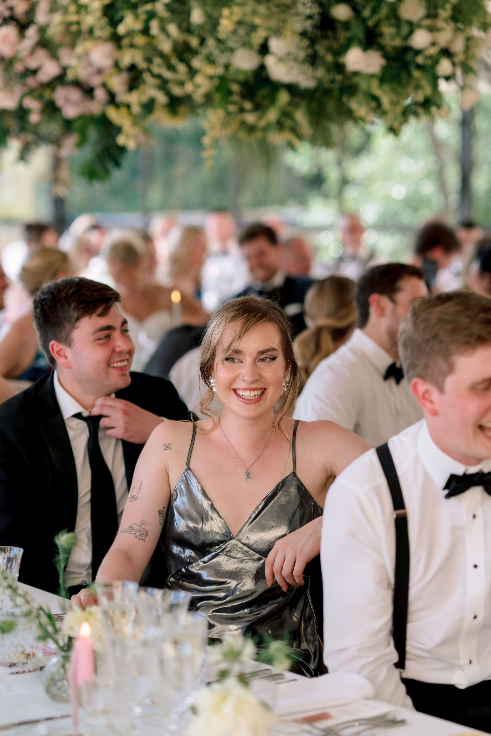 The wedding day itself was effortlessly elegant. With a timeless black-tie dress code perfectly suited to the grandeur of Sudeley Castle. Hope and Tristan chose to marry in the intimate castle church, steeped in history. It’s famously the burial place of Catherine Parr. Making the ceremony even more meaningful, Tristan’s father acted as celebrant, creating a deeply personal and emotional moment.