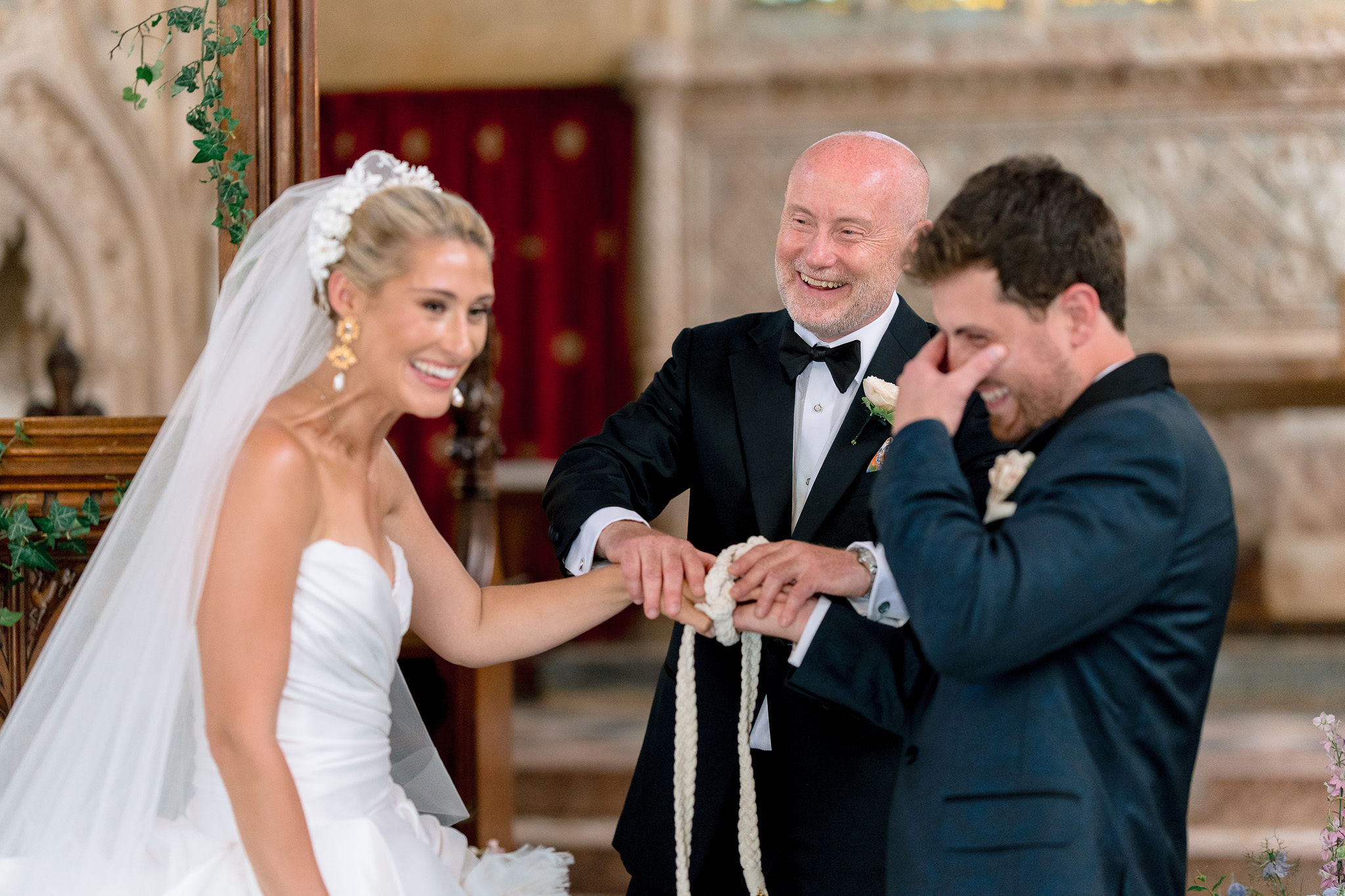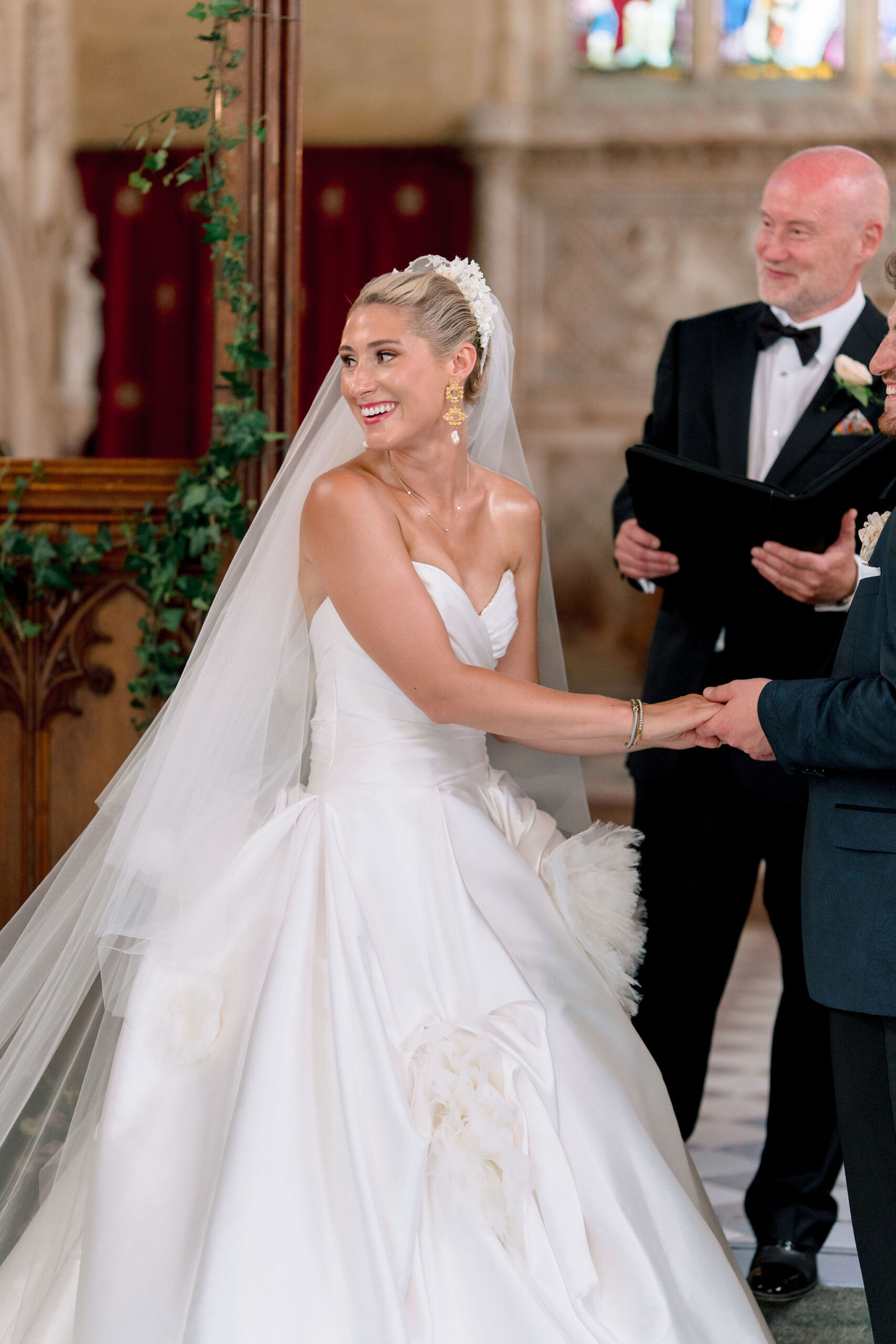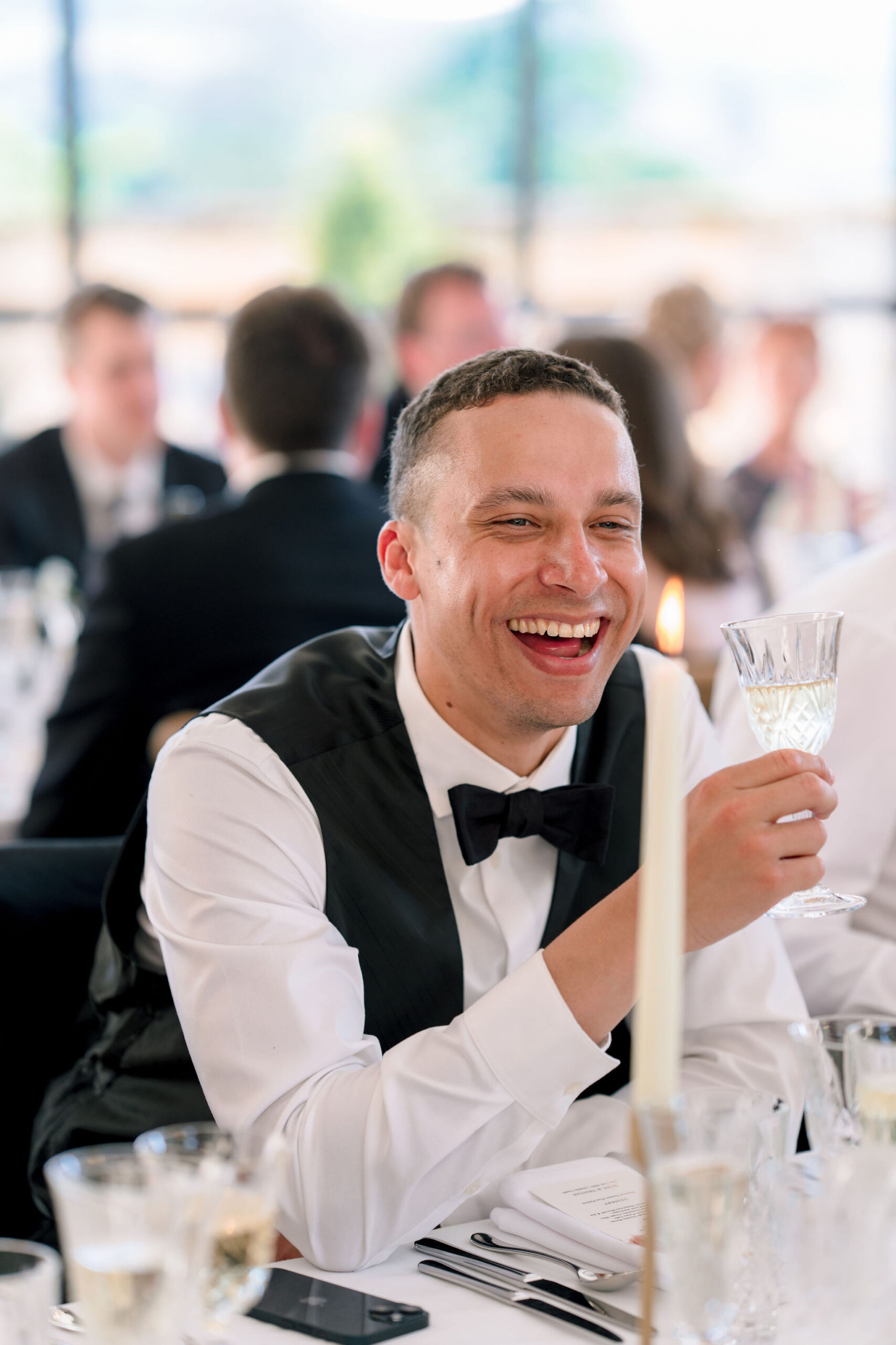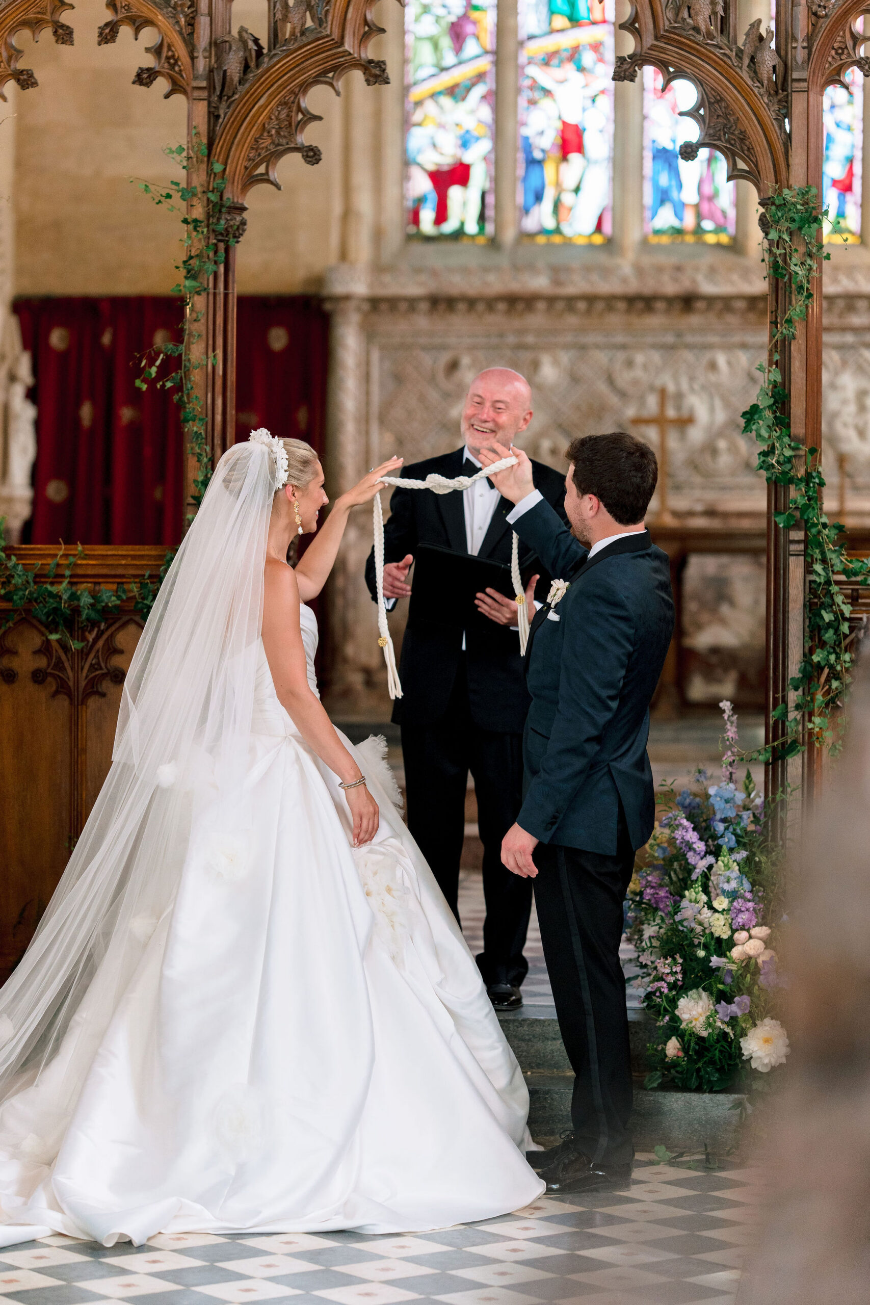 The wedding day itself was effortlessly elegant. With a timeless black-tie dress code perfectly suited to the grandeur of Sudeley Castle. Hope and Tristan chose to marry in the intimate castle church, steeped in history. It’s famously the burial place of Catherine Parr. Making the ceremony even more meaningful, Tristan’s father acted as celebrant, creating a deeply personal and emotional moment.