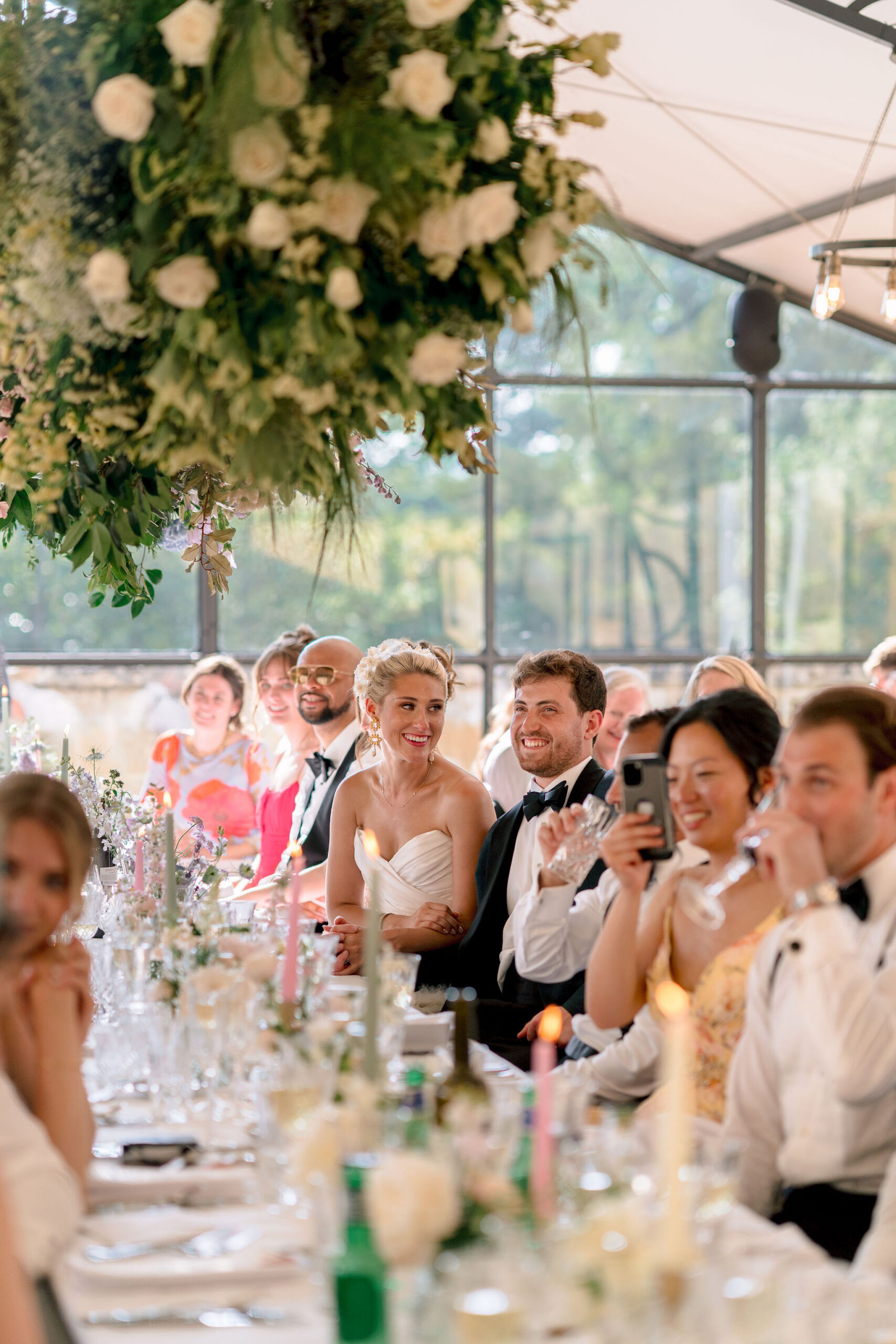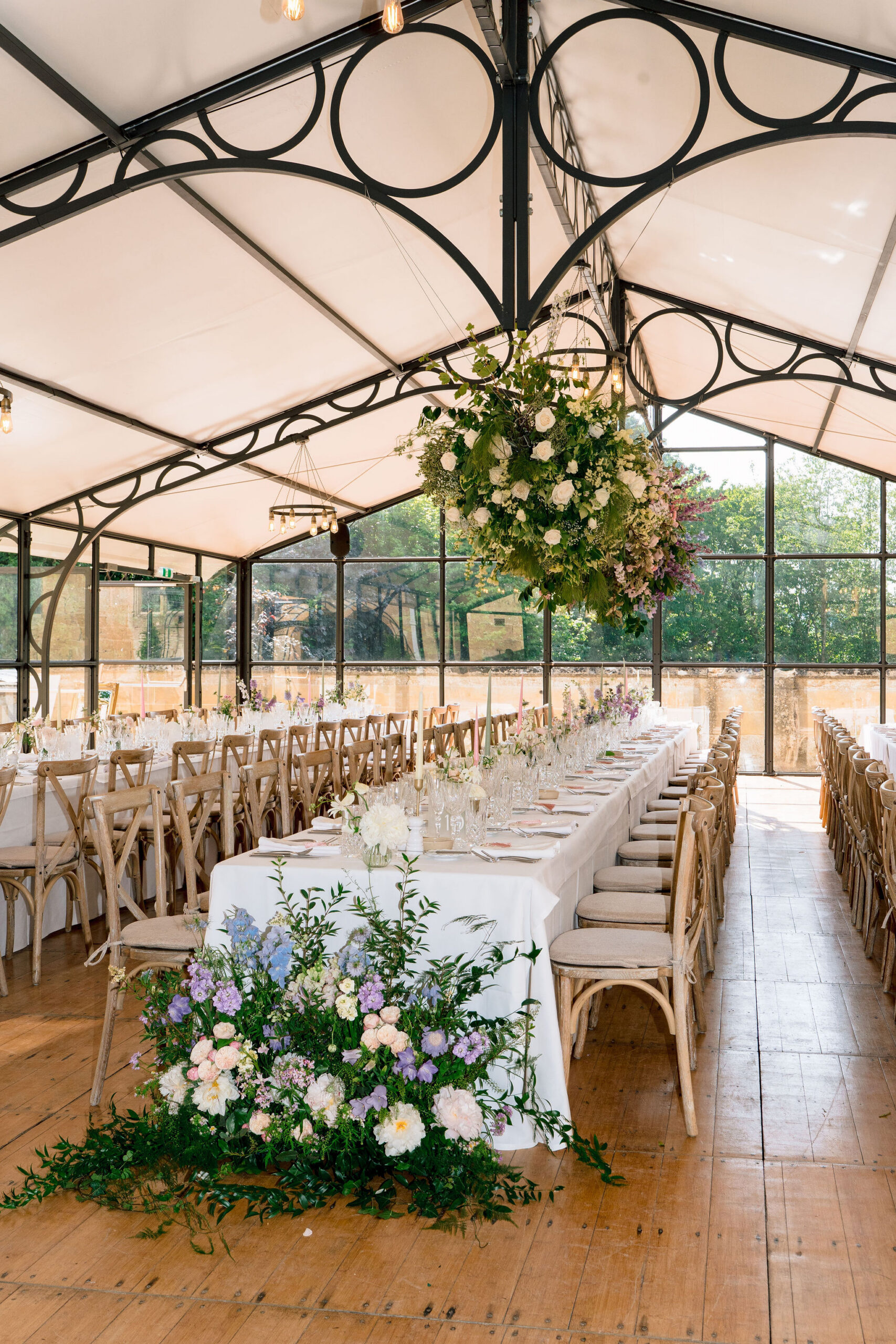Following the ceremony, guests enjoyed a drinks reception in the stunning rose garden, surrounded by blooming florals and golden Cotswold stone. The celebrations then continued in the Orangery for the wedding breakfast. Light-filled, romantic, and the perfect setting for heartfelt speeches and unforgettable moments. And a banging party lead by Tux Fizz!